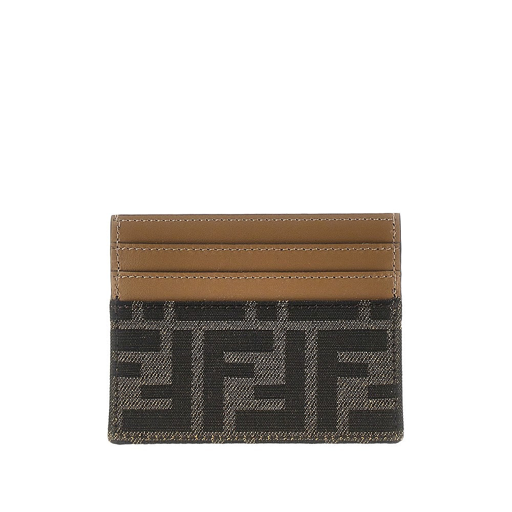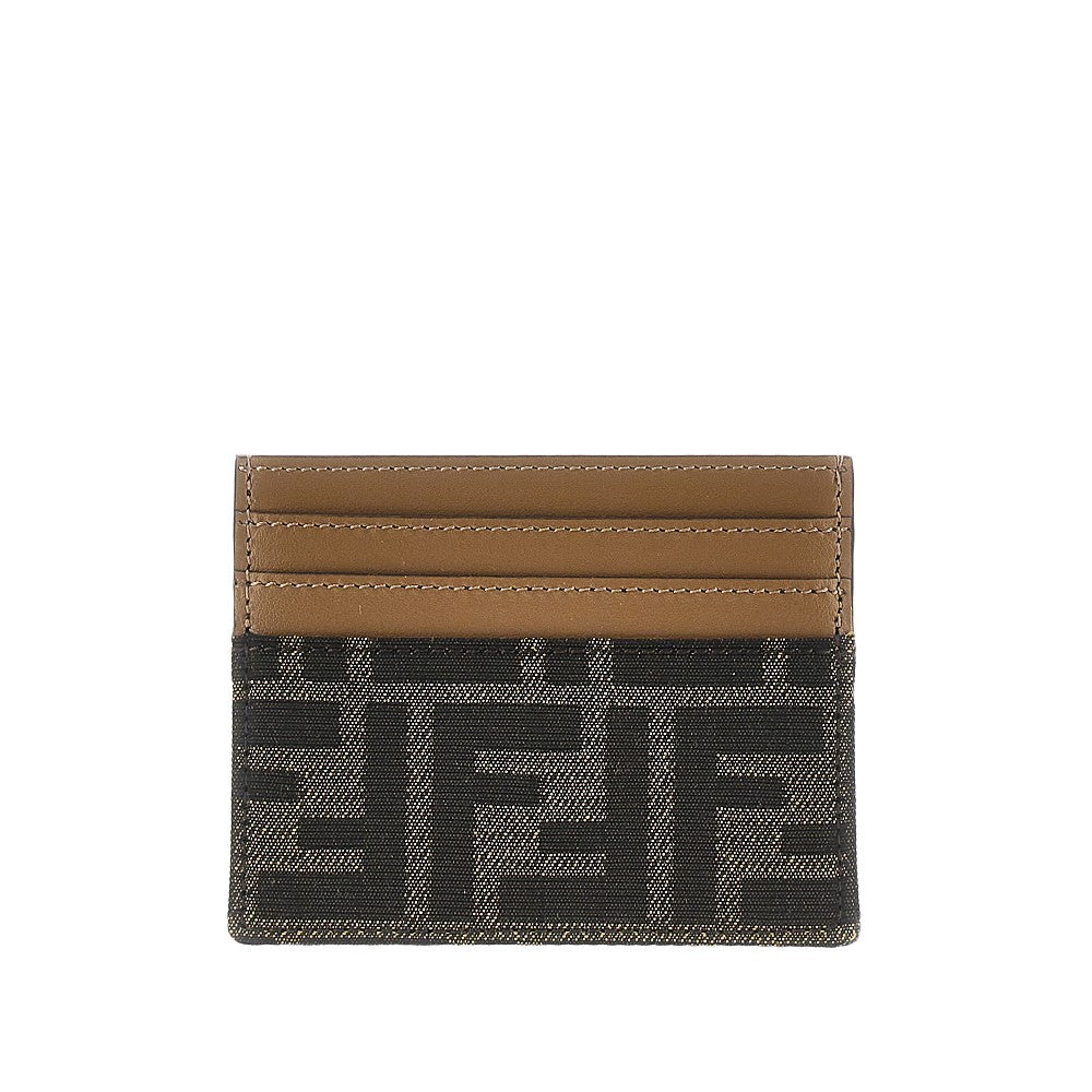 Leather and jacquard FF fabric cardholder