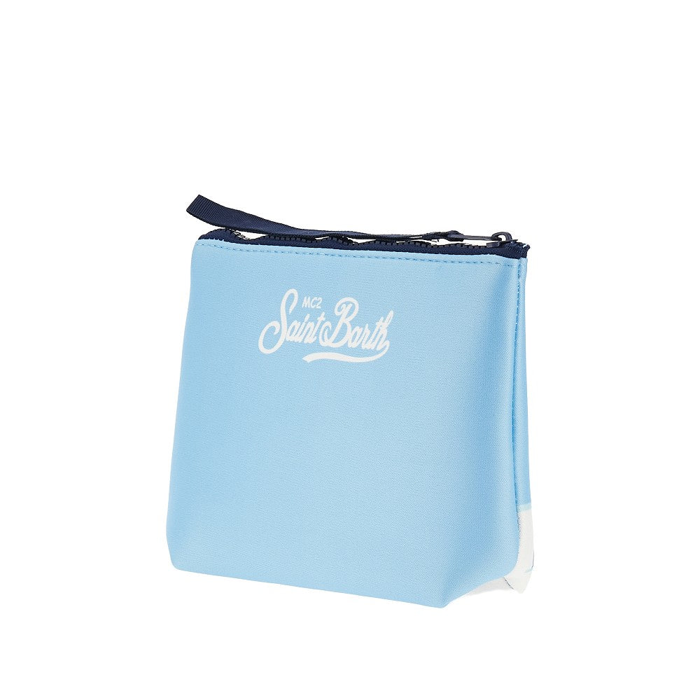 Pouch made from neoprene with Mykonos Postcard pattern at front and logo print at back. Zip closure and webbing wrist strap. Unlined.