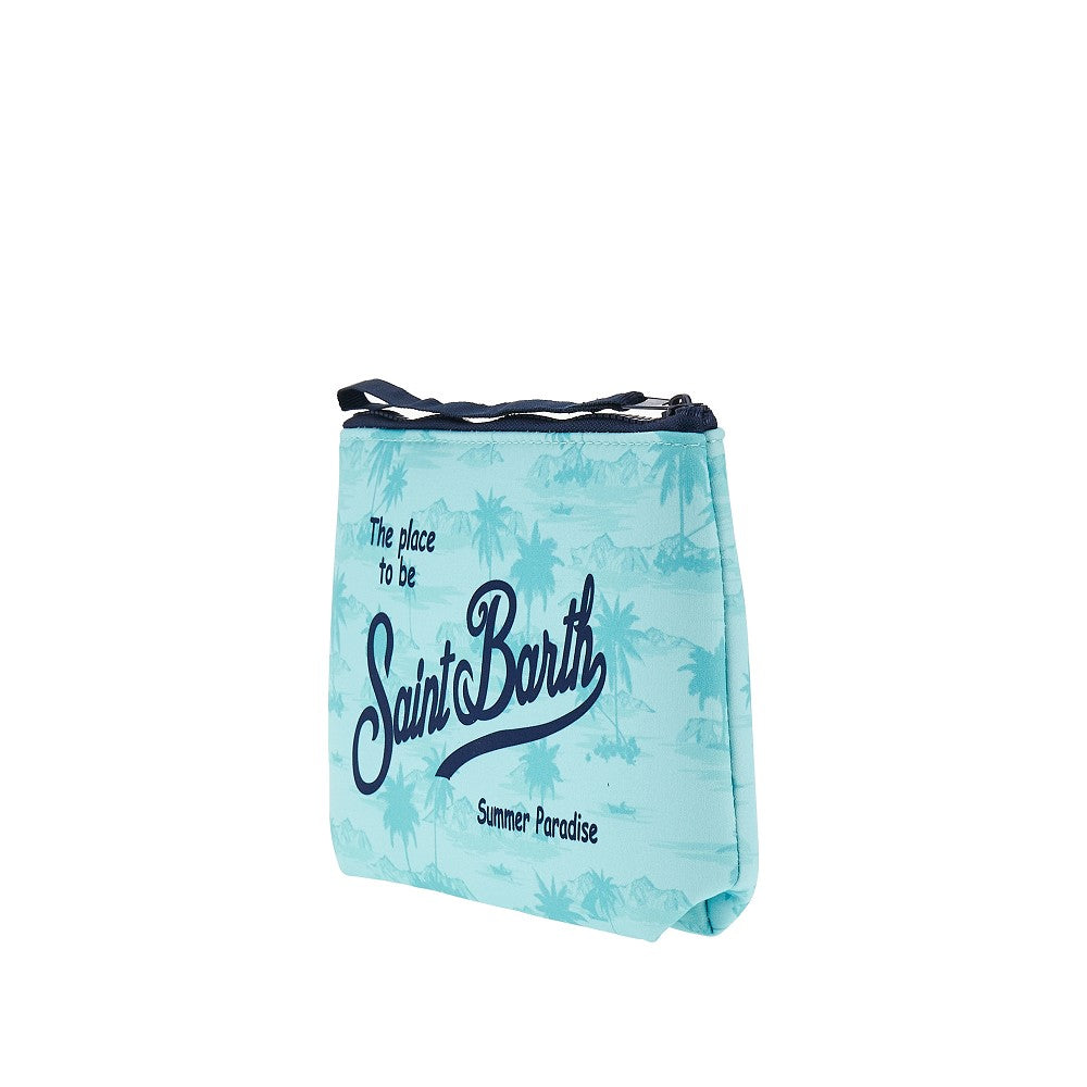 Pouch made from neoprene with Hawaii pattern and logo print. Zip closure and webbing wrist strap. Unlined.