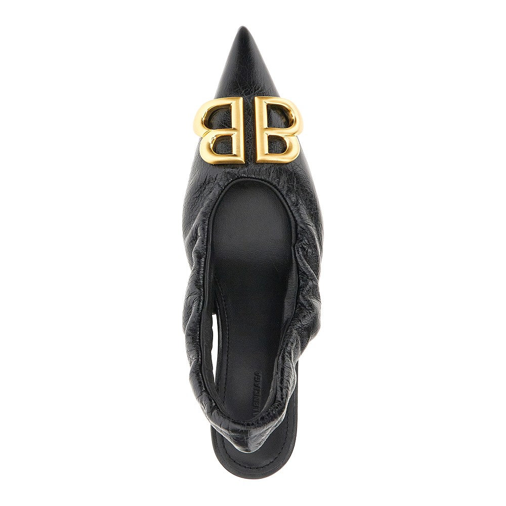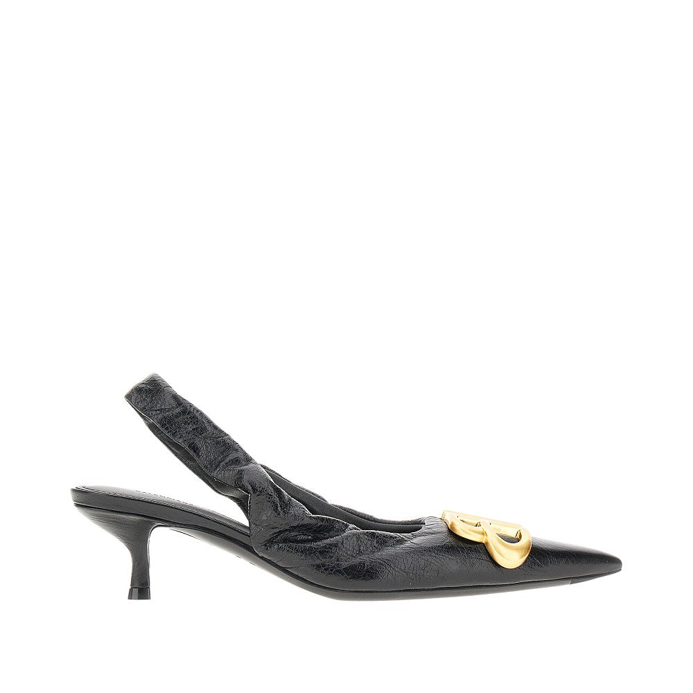 Pointed-toe slingback pumps made from Arena leather, enriched with gold-finished metal "Monaco BB" logo. Rear elasticated strap. Leather lining and insole. Leather-covered kitten heel. Leather sole with rubber tip inlay.