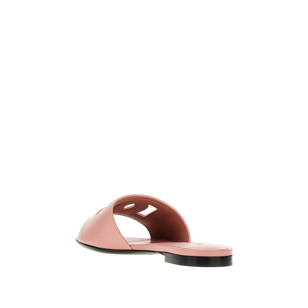 Slides in smooth calfskin, featuring quilted cut-out DG logo on the band. Leather lining and insole. Leather sole with rubber inlay on the heel.