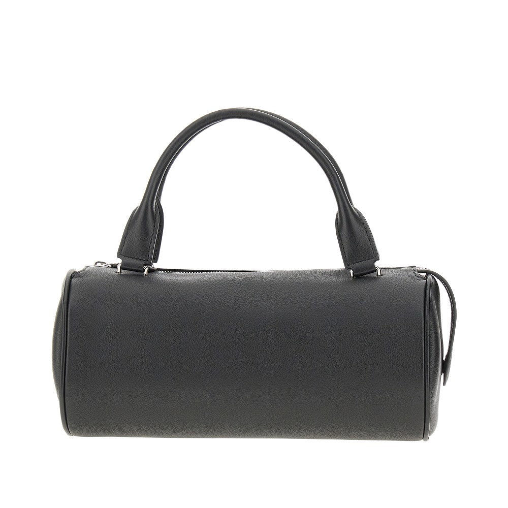 Bag made from soft small grain leather with top handles. Debossed mini logo on the side. Silver-finished metal zip closure. Leather interior.