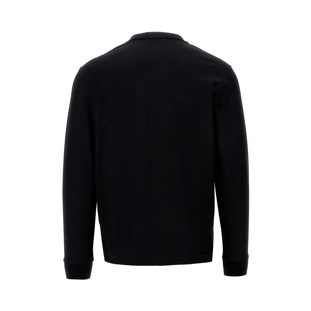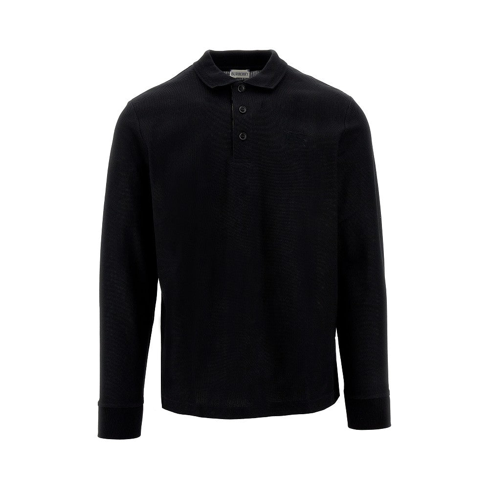 Long-sleeved polo shirt made from cotton piquet, enriched with tone-on-tone Equestrian Knight Design embroidery at chest. Micro ribbed collar and cuffs. Three buttons closure at neckline. Side splits at bottom. Slim fit.
