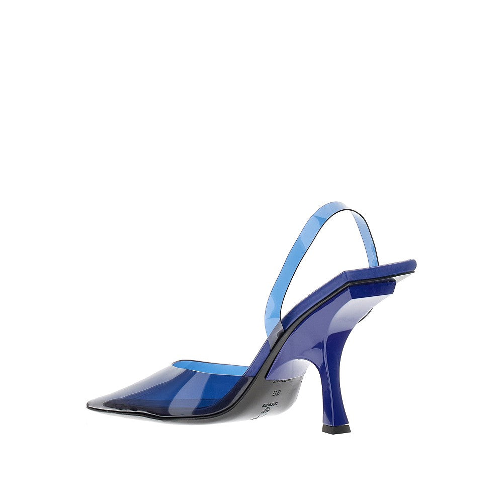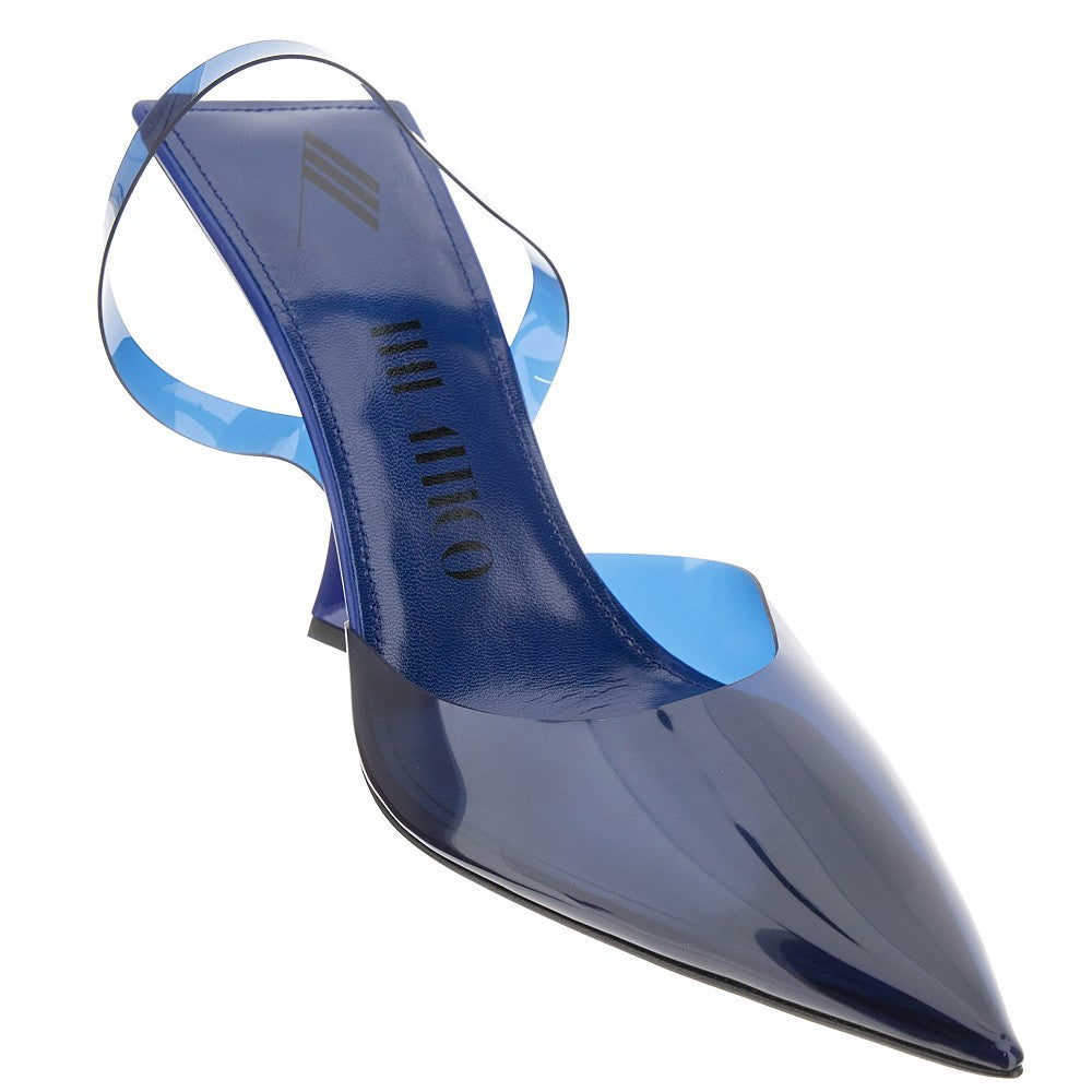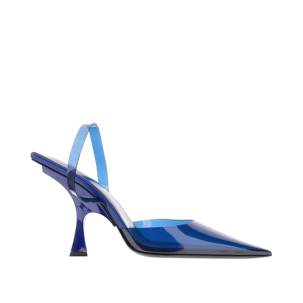 Pointed-toe slingback pumps made from PVC, featuring tone-on-tone lacquered heel. Leather insole. Leather sole.