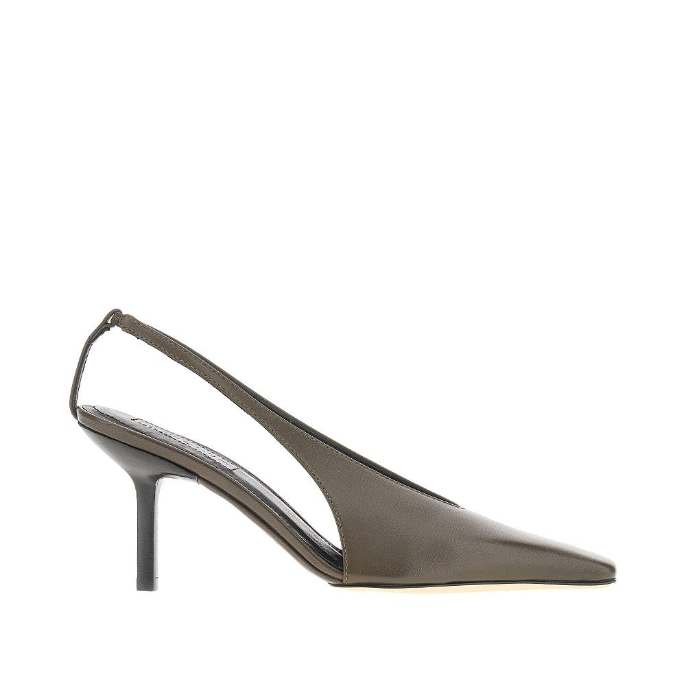 Slingback pumps made from soft nappa leather, featuring rounded-off elongated toe. Rear strap with elasticated insert. Leather lining and insole. Leather sole and stiletto heel.