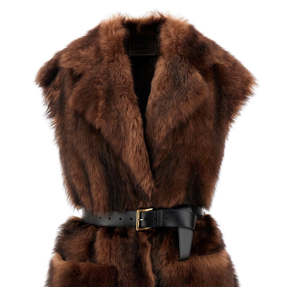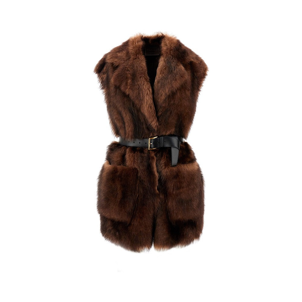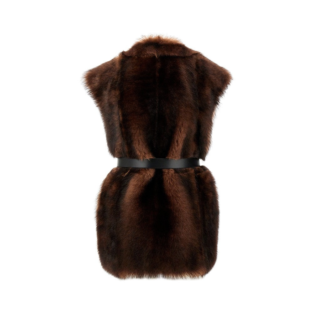 Fur vest with belt