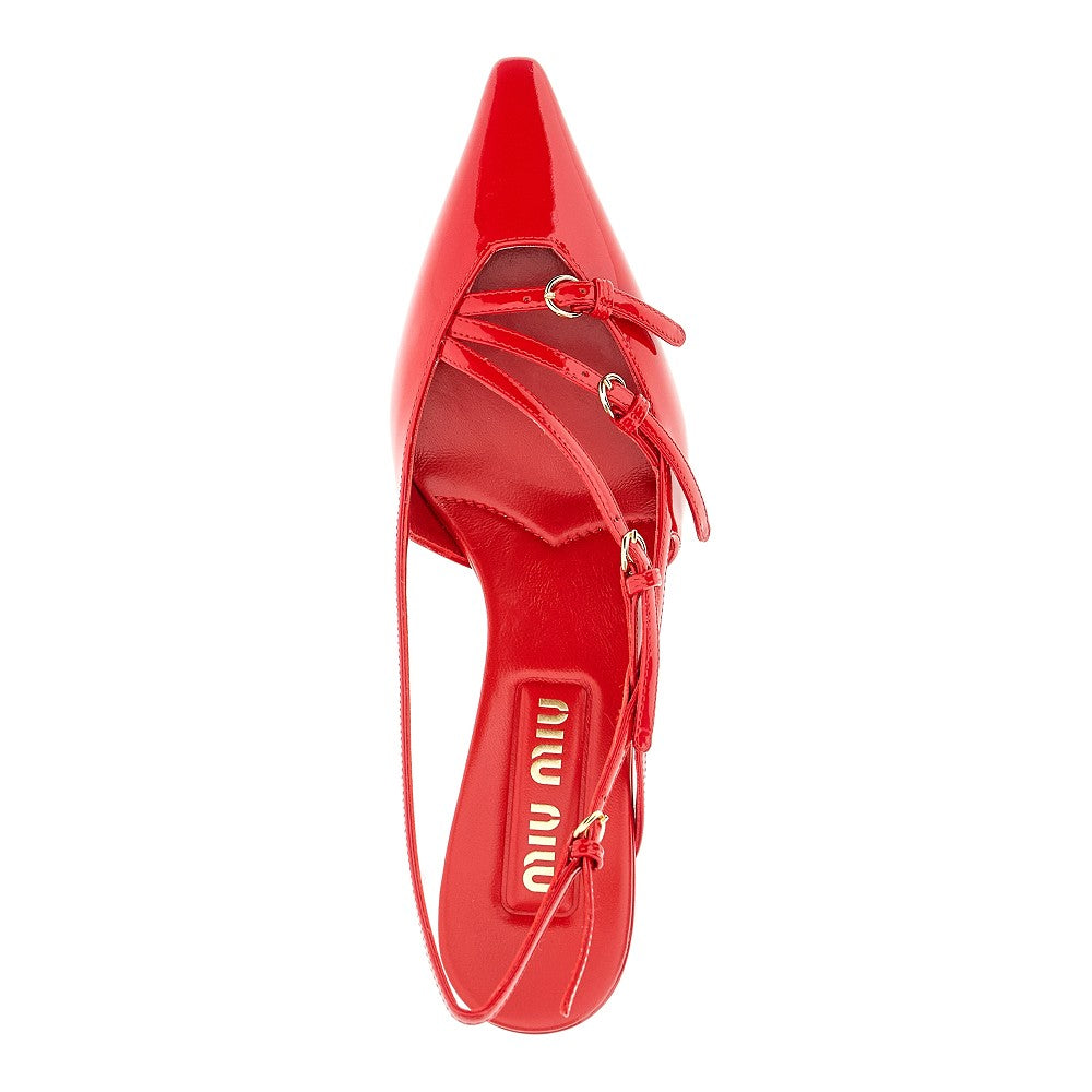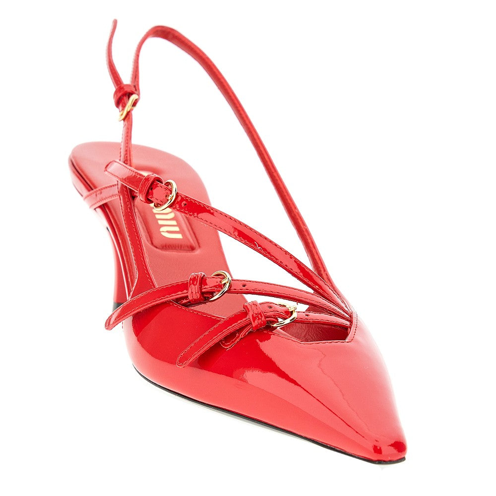 Patent leather slingback pumps with straps