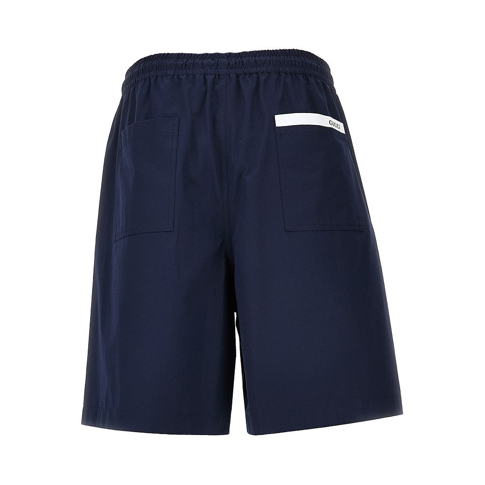 Shorts made from cotton poplin, featuring adjustable elasticated waist with elastic drawstring. Side welt pockets and rear patch ones. Contrasting heat-taped trimming with lettering logo on the rear right pocket. Regular fit with wide leg.