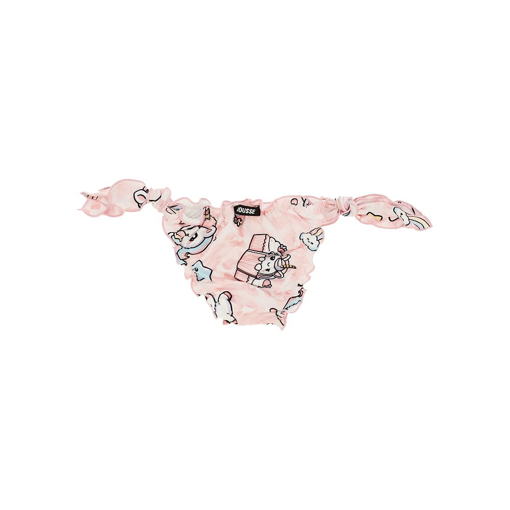 Beachwear bottom made from stretch technical fabric, featuring all-over 'Unileo' print. Crinkled edges, laces to tie on the hips and fabric logo label on the waist back. Lined.