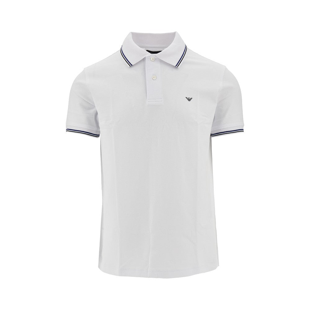 Short-sleeved polo shirt made from stretch cotton piqué, enriched with Eagle logo print on the chest. Knit collar and cuffs with contrasting stripes. Side vents at hem. Regular fit.