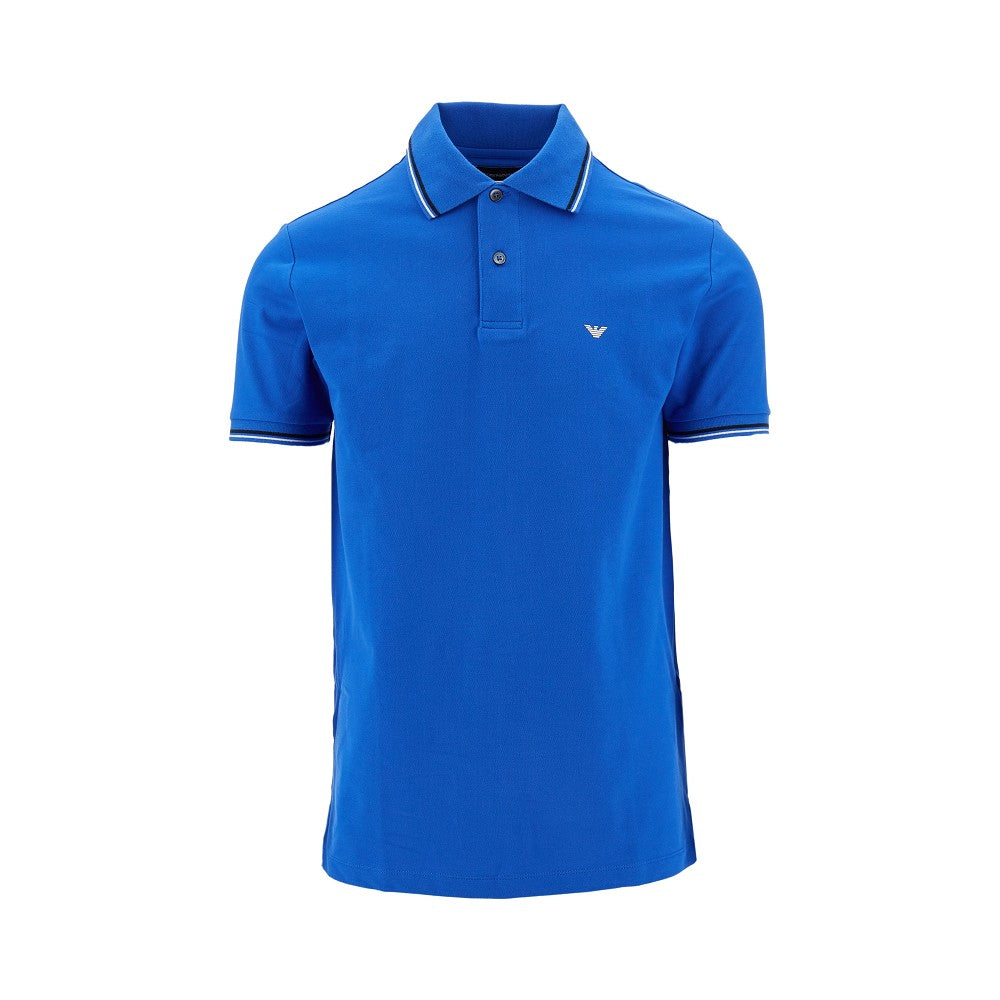 Short-sleeved polo shirt made from stretch cotton piqué, enriched with Eagle logo print on the chest. Knit collar and cuffs with contrasting stripes. Side vents at hem. Regular fit.
