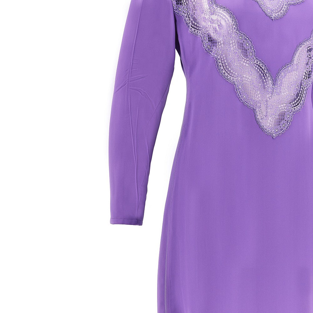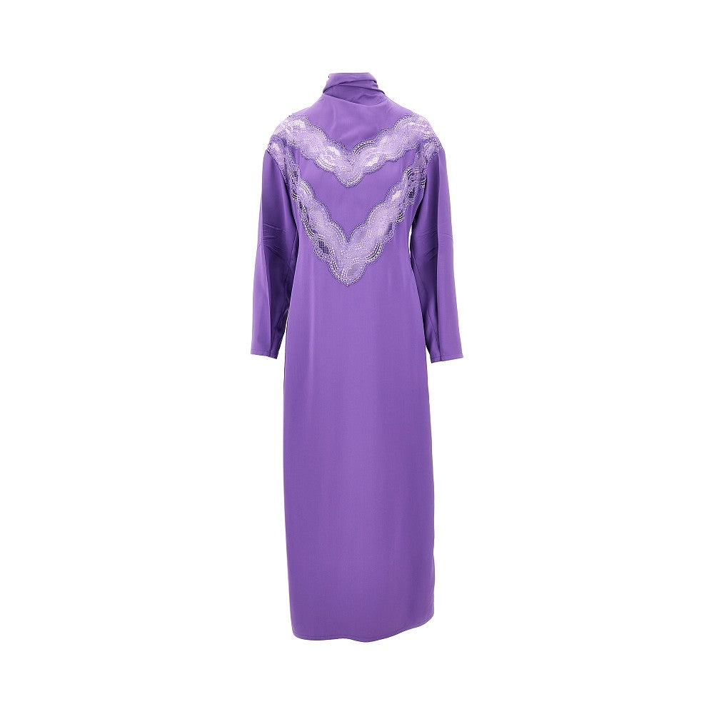 Abito midi in satin con inserti in pizzo