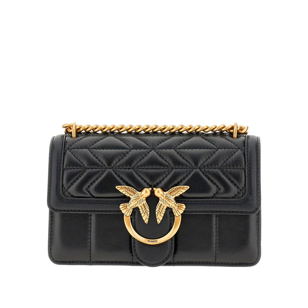 Borsa realizzata in nappa trapuntata, caratterizzata dalla pattina con chiusura magnetica e fibbia Love Birds in metallo finitura oro anticato. Tracolla scorrevole e regolabile in catena con inserto in pelle. Interno foderato in suedette con due scomparti, una tasca applicata e una con zip.