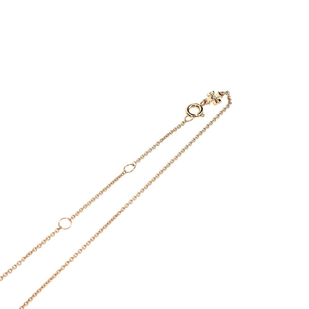 Collana sottile a catena realizzata in ottone finitura oro rosato, arricchita dal pendente Doppia T con mini cristalli incastonati. Chiusura regolabile con moschettone.