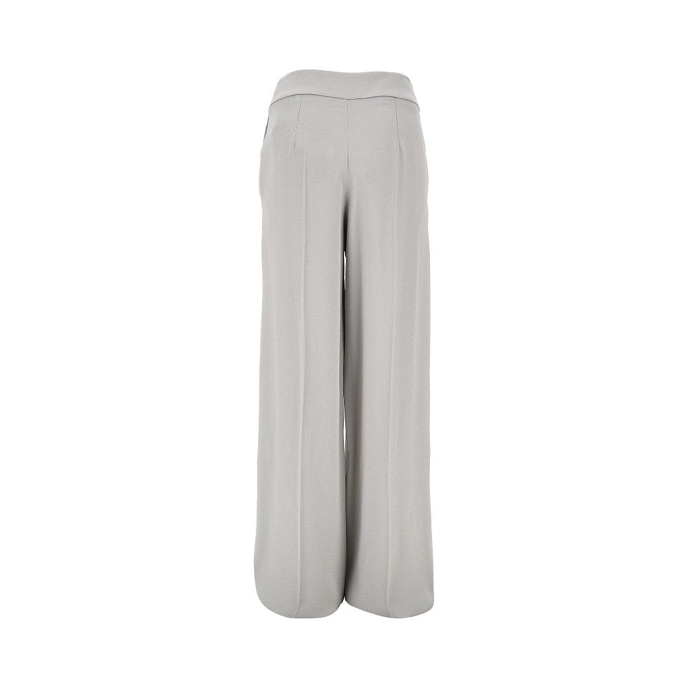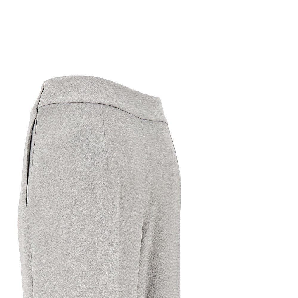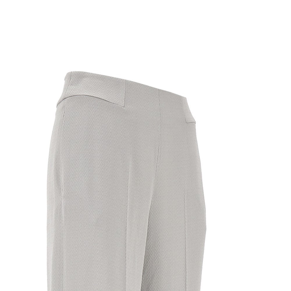 Pantalone sartoriale realizzato in cady di misto viscosa con fantasia chevron in jacquard. Gamba dritta e ampia. Vita regolare. Tasche inserite nelle cuciture laterali. Chiusura laterale con zip a scomparsa.