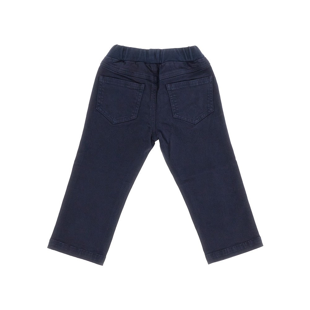 Pantalone realizzato in twill di cotone elasticizzato. Vita elastica in jersey con coulisse. Tasche arrotondate sui fianchi e a toppa sul retro. Patta decorativa.