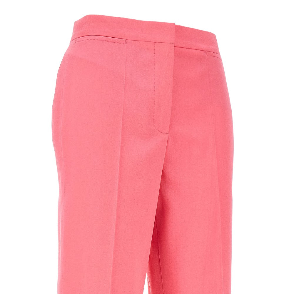 Pantalone sartoriale in twill di lana sostenibile certificata RWS leggermente elasticizzato. Gamba dritta con piega centrale. Silhouette regolare a vita media. Patta con zip e chiusura con gancetti e bottone a scomparsa. Tasche a filetto sui fianchi e una sul retro.