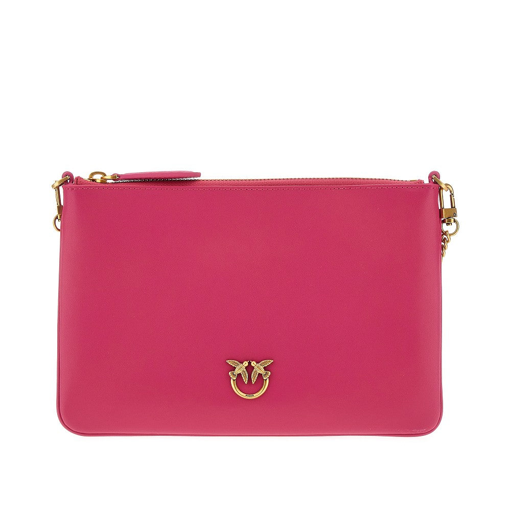 Pochette Flat Classic in pelle liscia, arricchita dal dettaglio Love Birds in metallo sul davanti. Logo ricamato sul retro, tracolla removibile in catena e chiusura con zip. Interno foderato in twill con una tasca piatta con zip e una tasca applicata. Accessori in metallo finitura oro anticato.