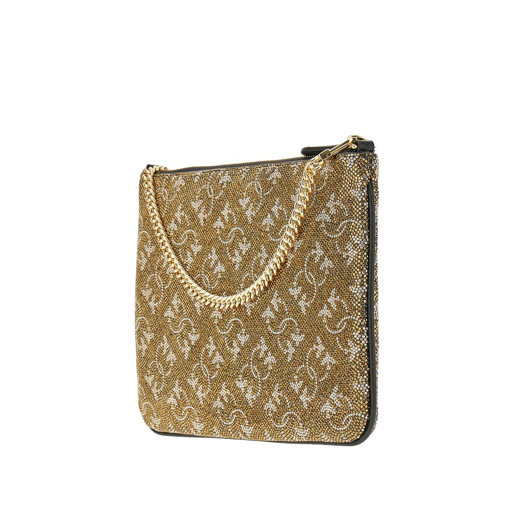 Pochette Flat Classic in strass con motivo Love Birds all-over, arricchita dal dettaglio Love Birds in metallo sul davanti. Finiture in pelle. Tracolla removibile in catena e chiusura zip. Interno foderato in suedette con una tasca piatta con zip e una tasca applicata. Accessori in metallo dorato.