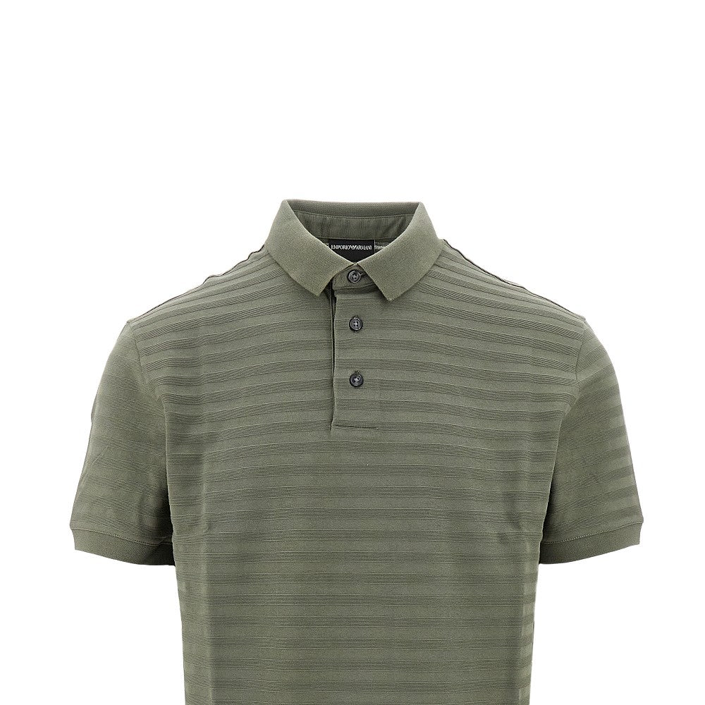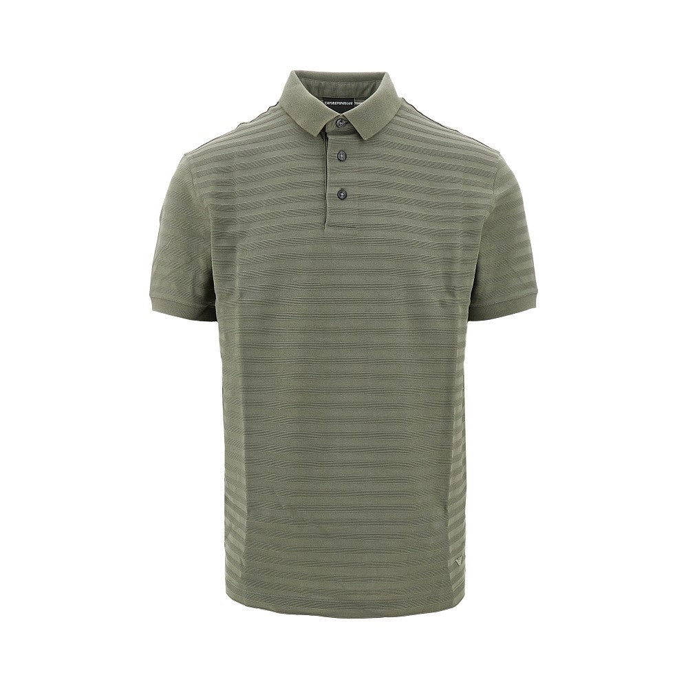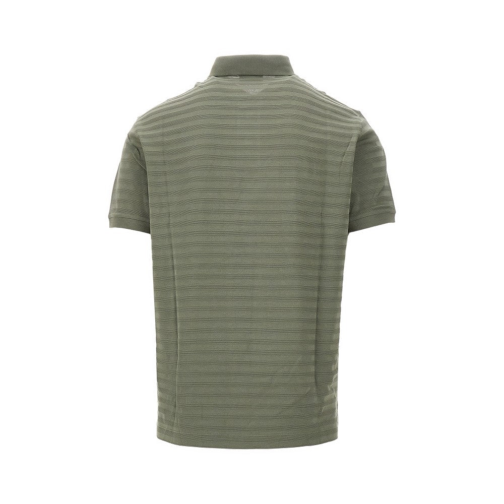 Polo a manica corta realizzata in jersey di cotone con lavorazione jacquard a righe. Colletto e fondo manica rifiniti in micro costine. Logo Eagle ricamato lateralmente sul fondo. Spacchetti laterali. Vestibilità regolare.