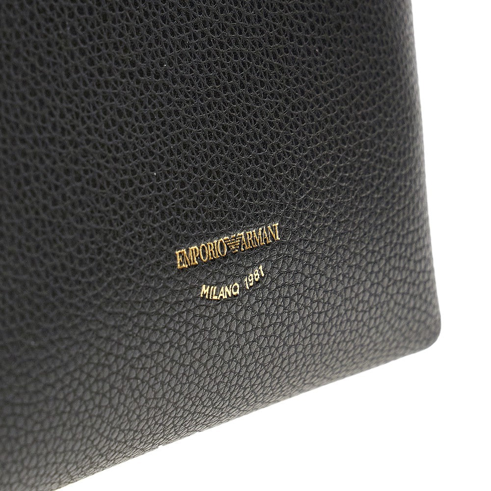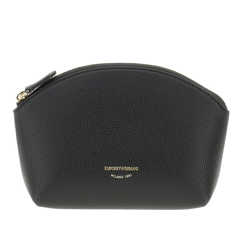 Pouch realizzato in finta pelle stampa cervo, arricchito dal logo "Emporio Armani Milano 1981" dorato stampato sul davanti. Chiusura con zip in metallo dorato. Interno in finta pelle.