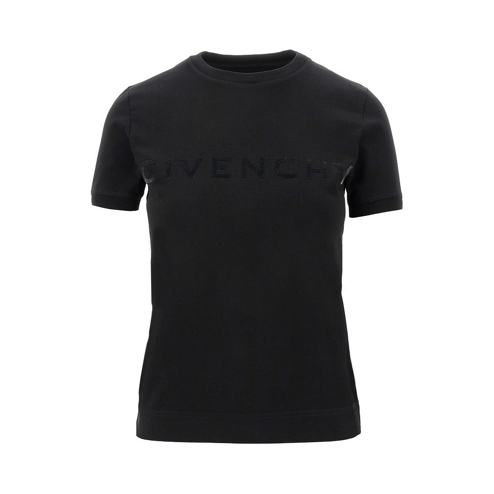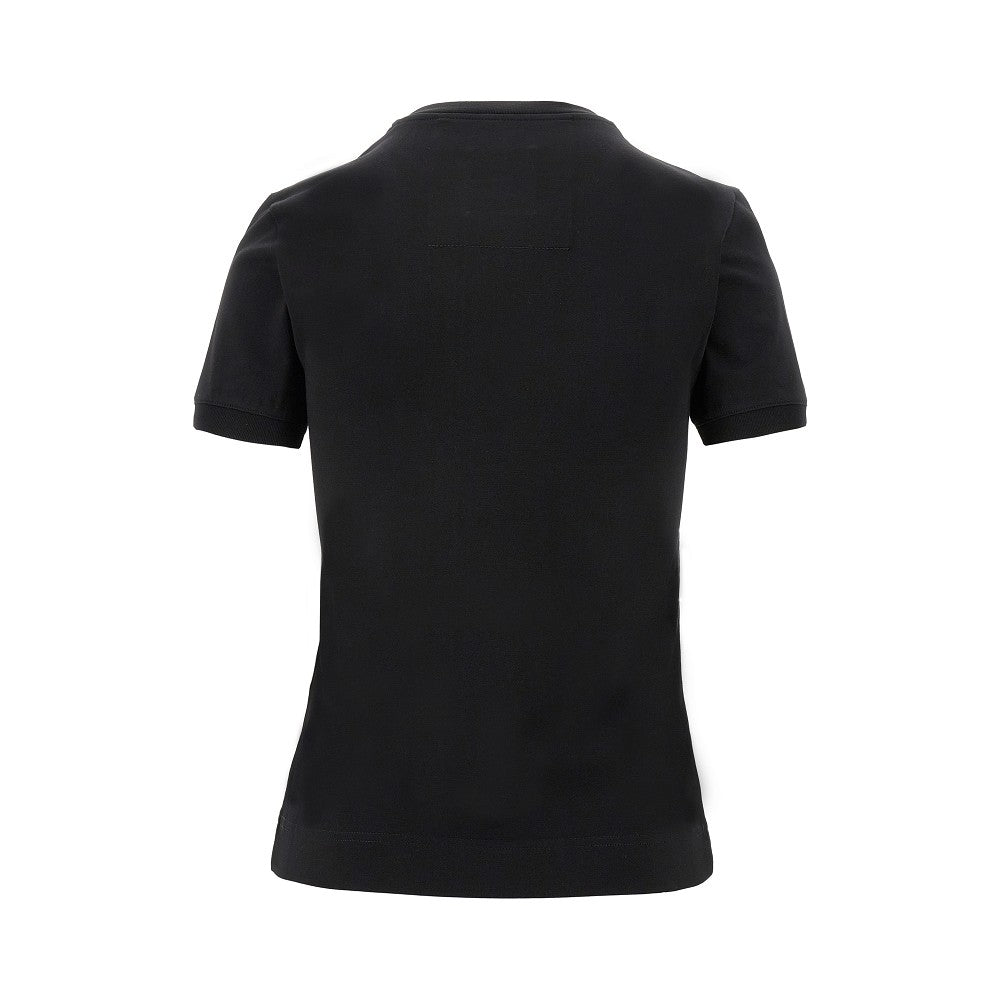 T-shirt a manica corta realizzata in jersey di cotone elasticizzato, arricchita dal logo lettering floccato tono su tono sul davanti. Girocollo e fondo manica rifiniti in micro costine. Vestibilità regolare.