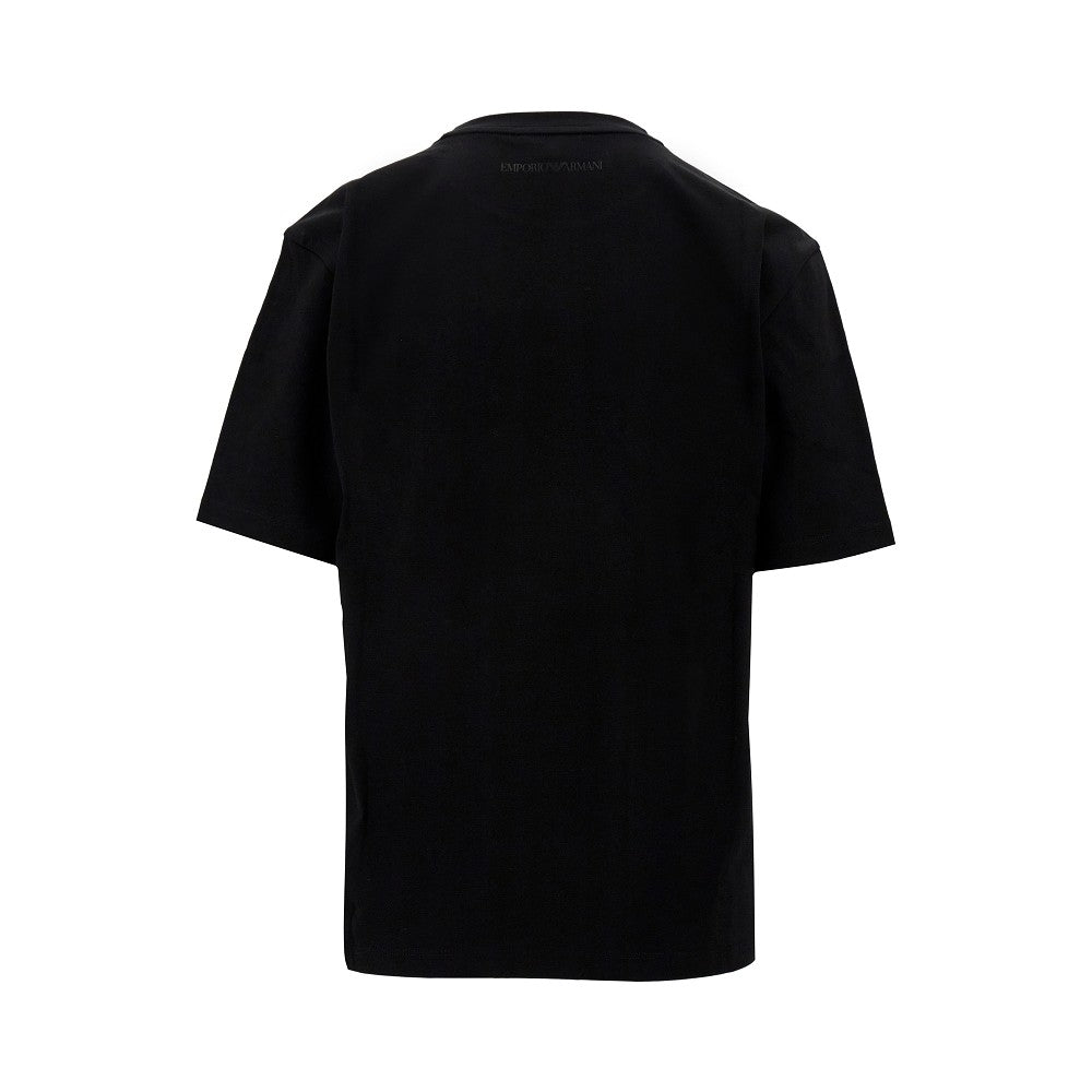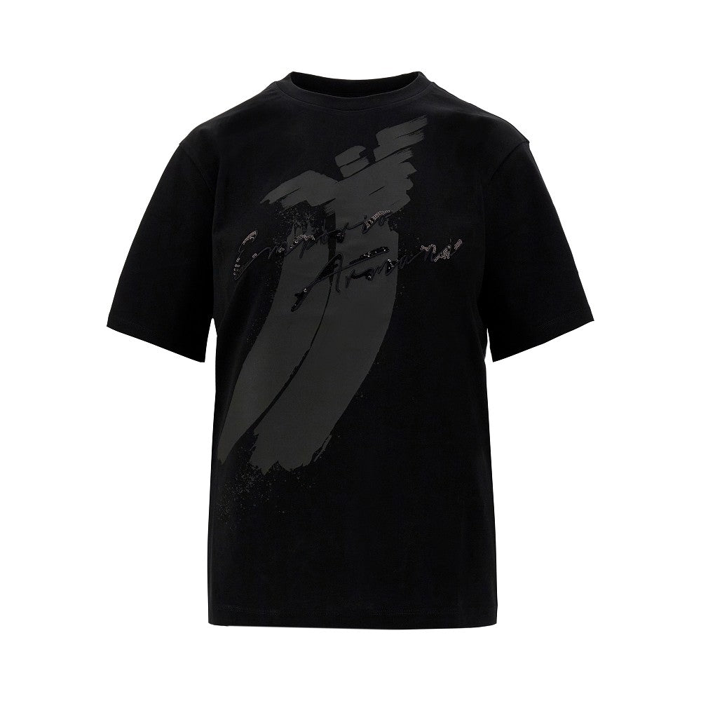 T-shirt a manica corta realizzata in jersey di cotone organico, arricchita dal motivo Eagle stampato e dal logo lettering ricamato con paillettes sul davanti. Girocollo rifinito in micro costine. Silhouette dritta e regolare.