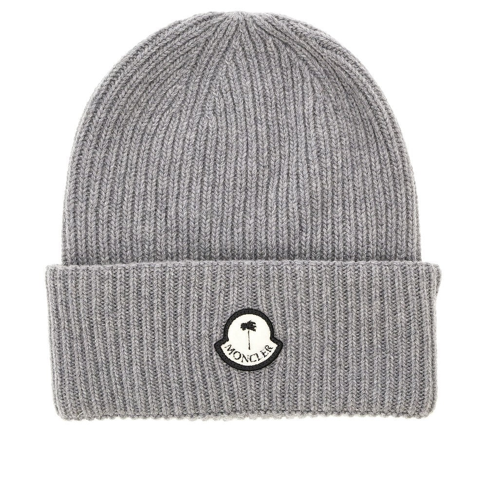 Beanie realizzato in filato di pura lana vergine con lavorazione a costine, arricchito dal patch logo "Moncler x Palm Angels" in velluto applicato sulla parte frontale del risvolto.
