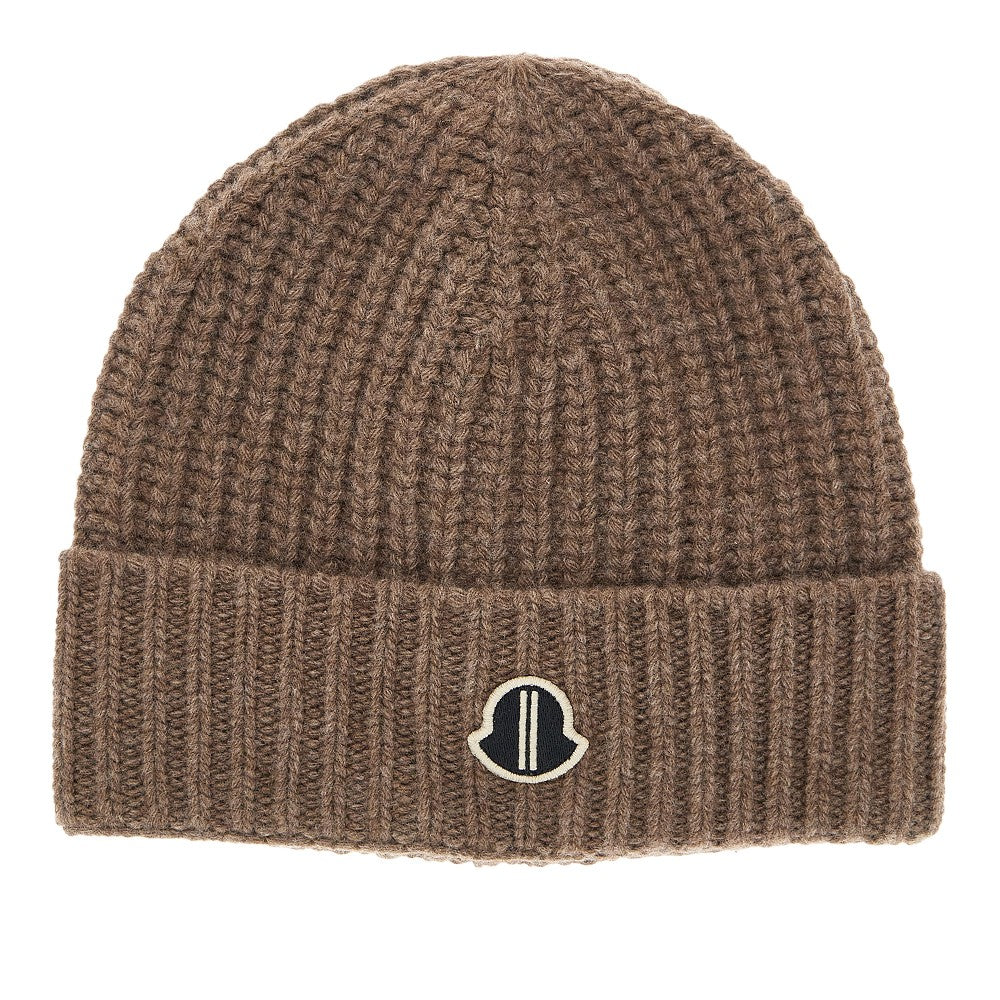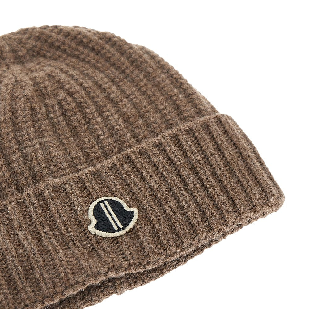 Beanie realizzato in morbido filato di misto lana e cachemire con lavorazione a costa inglese, arricchito dal patch "Moncler x Rick Owens" applicato sulla parte frontale del risvolto.