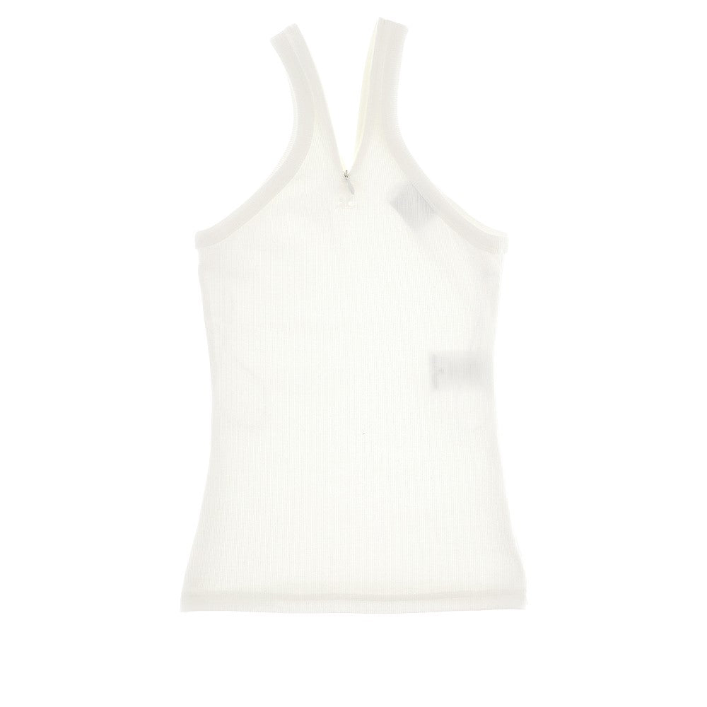 Canotta realizzata in jersey di cotone elasticizzato a costine, caratterizzata dallo scollo a V con zip. Logo AC ricamato tono su tono sul davanti. Vestibilità aderente.