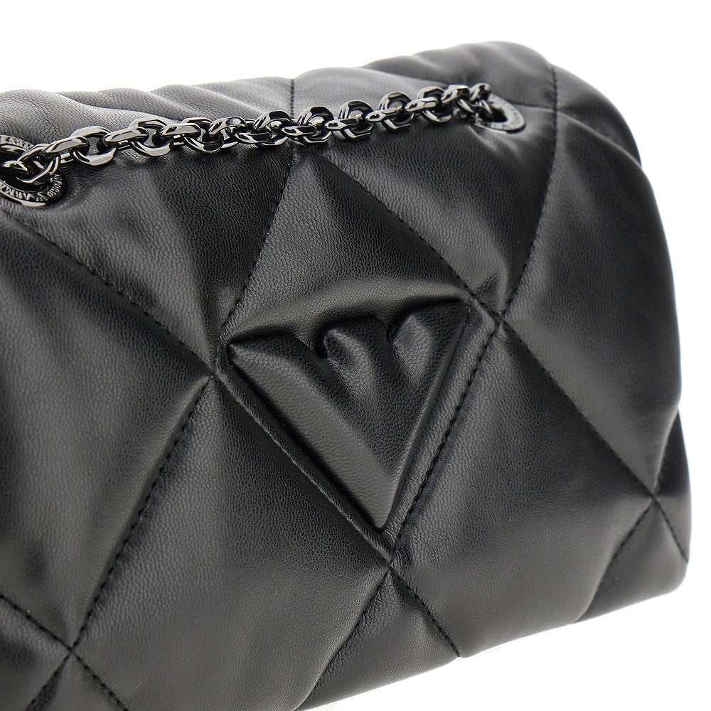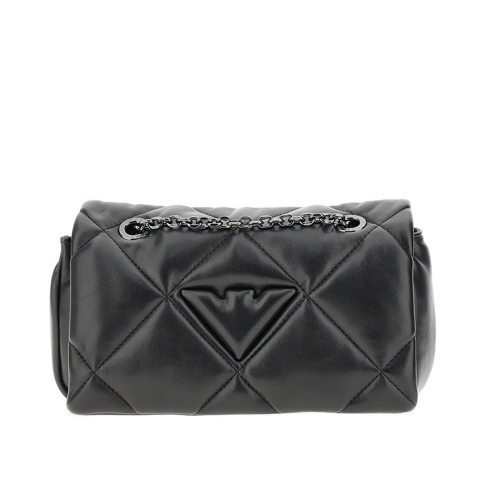 Mini bag realizzata in finta nappa leggermente imbottita con trapuntatura a rombi, caratterizzata dal logo Eagle in rilievo sulla patta. Tracolla scorrevole in catena metallica finitura rutenio. Chiusura ad incastro. Interno foderato in tessuto con una tasca piatta con zip.