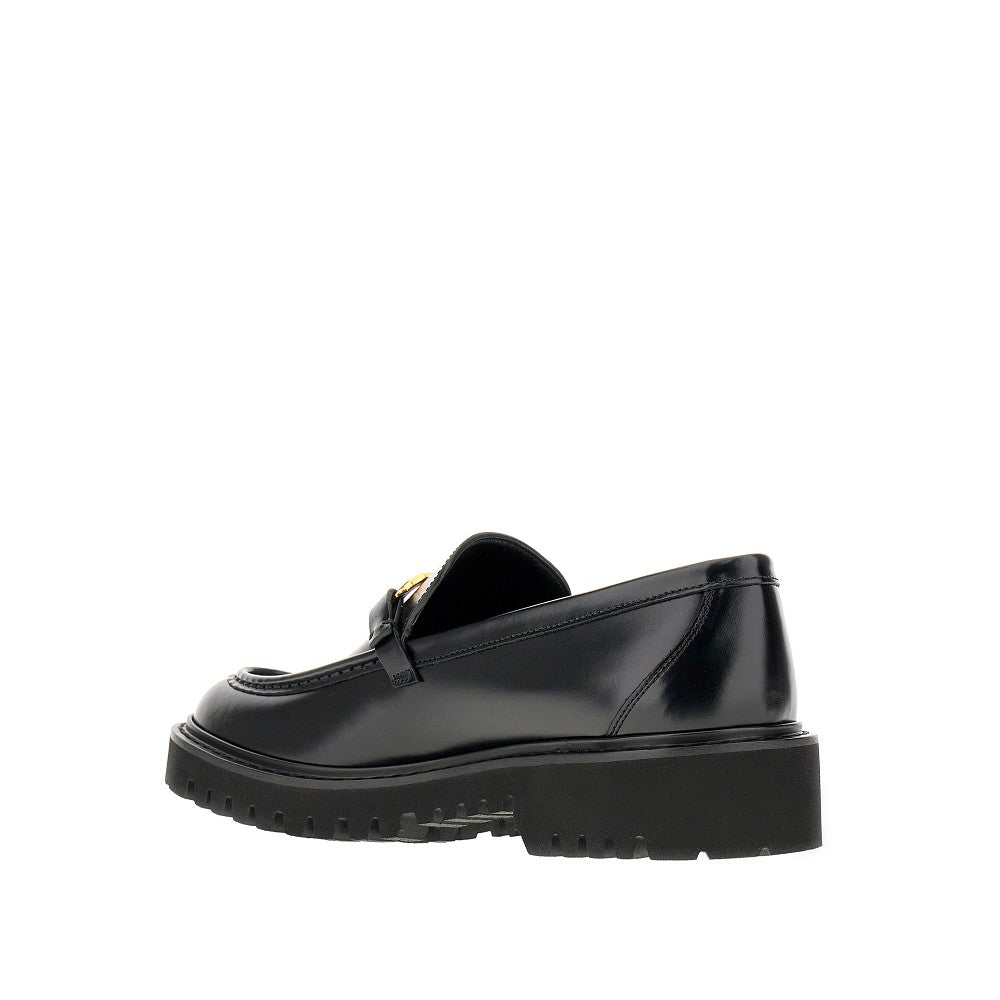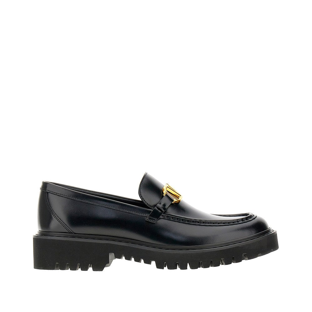 Mocassini realizzati in pelle liscia, arricchiti dalla fibbia VLogo Signature in metallo finitura oro. Fodera e soletta in pelle. Suola carrarmato in gomma.