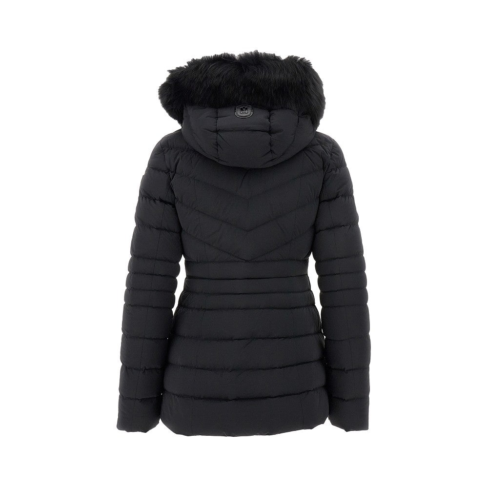 Piumino Patsy realizzato in nylon elasticizzato Agile 360 idrorepellente trapuntato con imbottitura in piuma. Chiusura zip a doppio cursore con finiture in pelle. Cappuccio removibile con coulisse e pelliccia. Tasche a filetto con zip. Logo sulla manica sinistra.