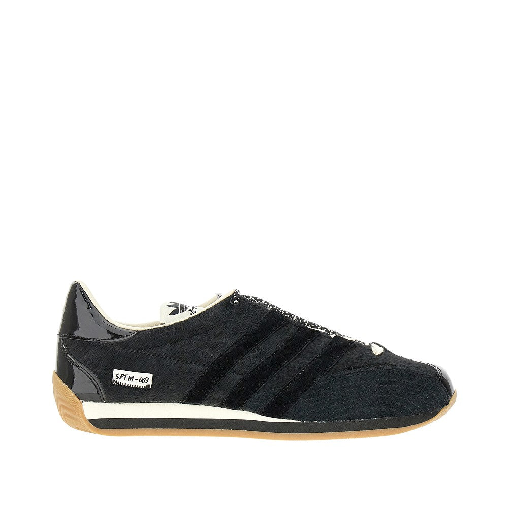 Sneakers Country OG SFTM x Adidas realizzate in pelle con rivestimento in cavallino sintetico, dettagli in pelle sintetica verniciata e le iconiche 3 Stripes laterali in velluto. Chiusura con stringhe e coulisse. Etichetta logo sulla linguetta. Fodera e soletta in tessuto. Suola in gomma.