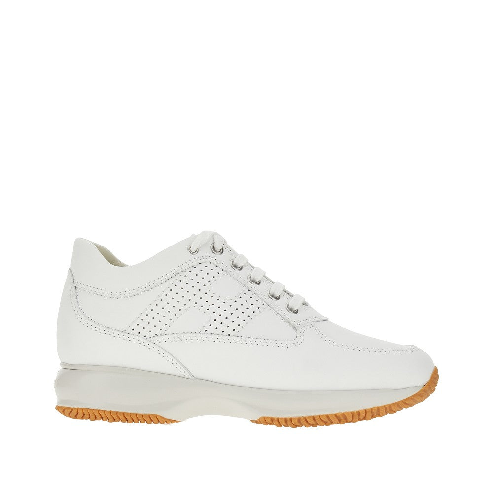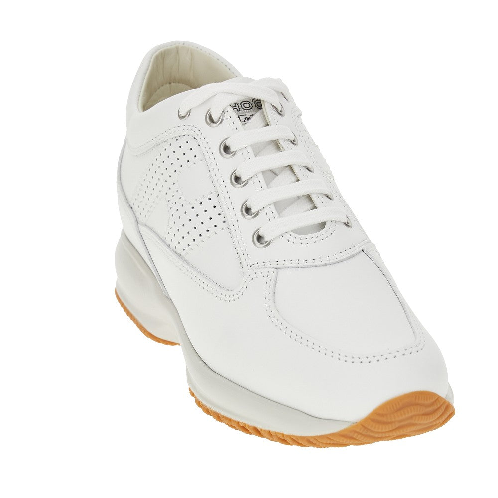 Sneakers Interactive realizzate in pelle liscia con monogram H traforato sui lati. Etichetta logo in tessuto sulla linguetta. Chiusura stringata. Fodera e soletta removibile in pelle. Suola in gomma con logo in rilievo sul retro. Lacci di ricambio inclusi.