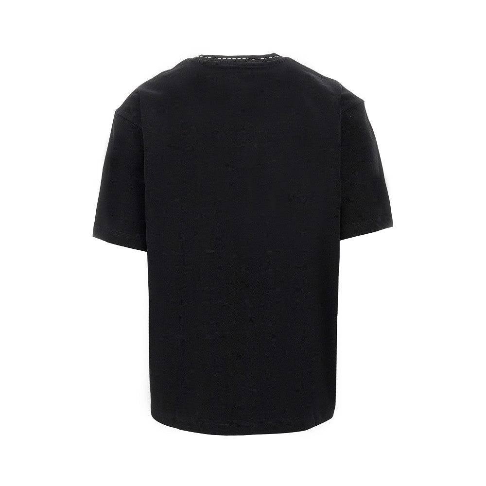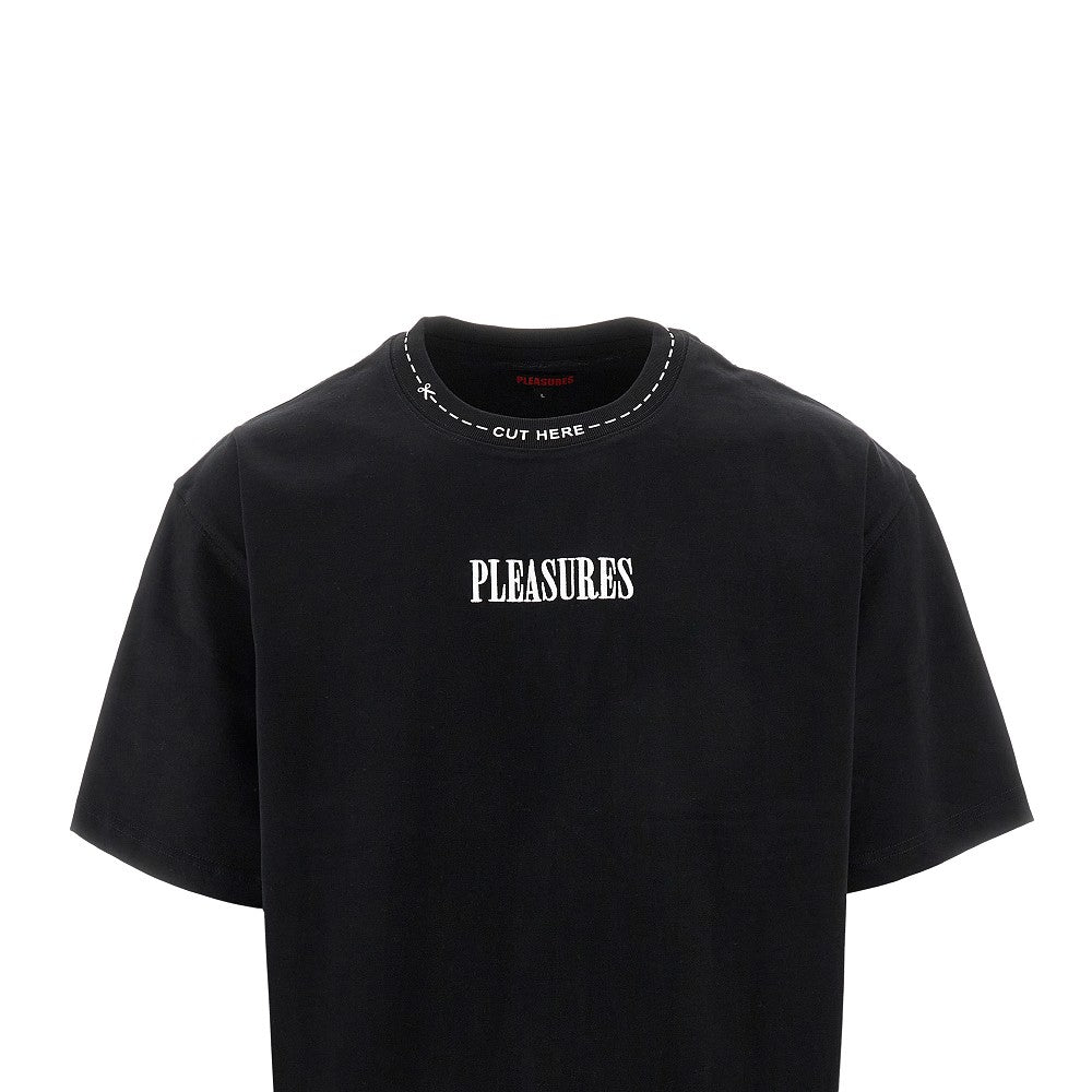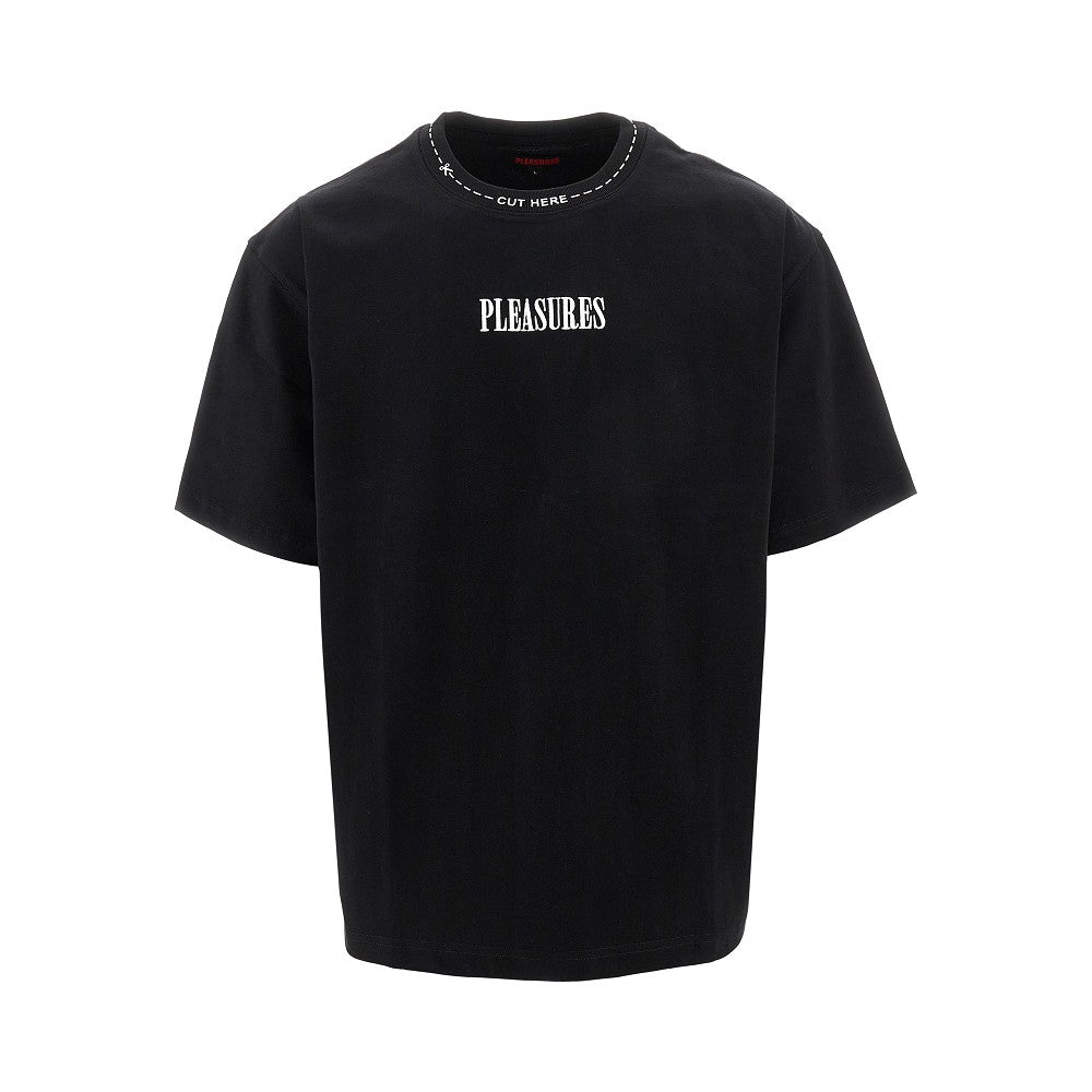 T-shirt a manica corta realizzata in pesante jersey di cotone, caratterizzata dal girocollo rifinito in micro costine con stampa "Cut here". Logo lettering ricamato sul davanti. Taglio dritto e leggermente largo.