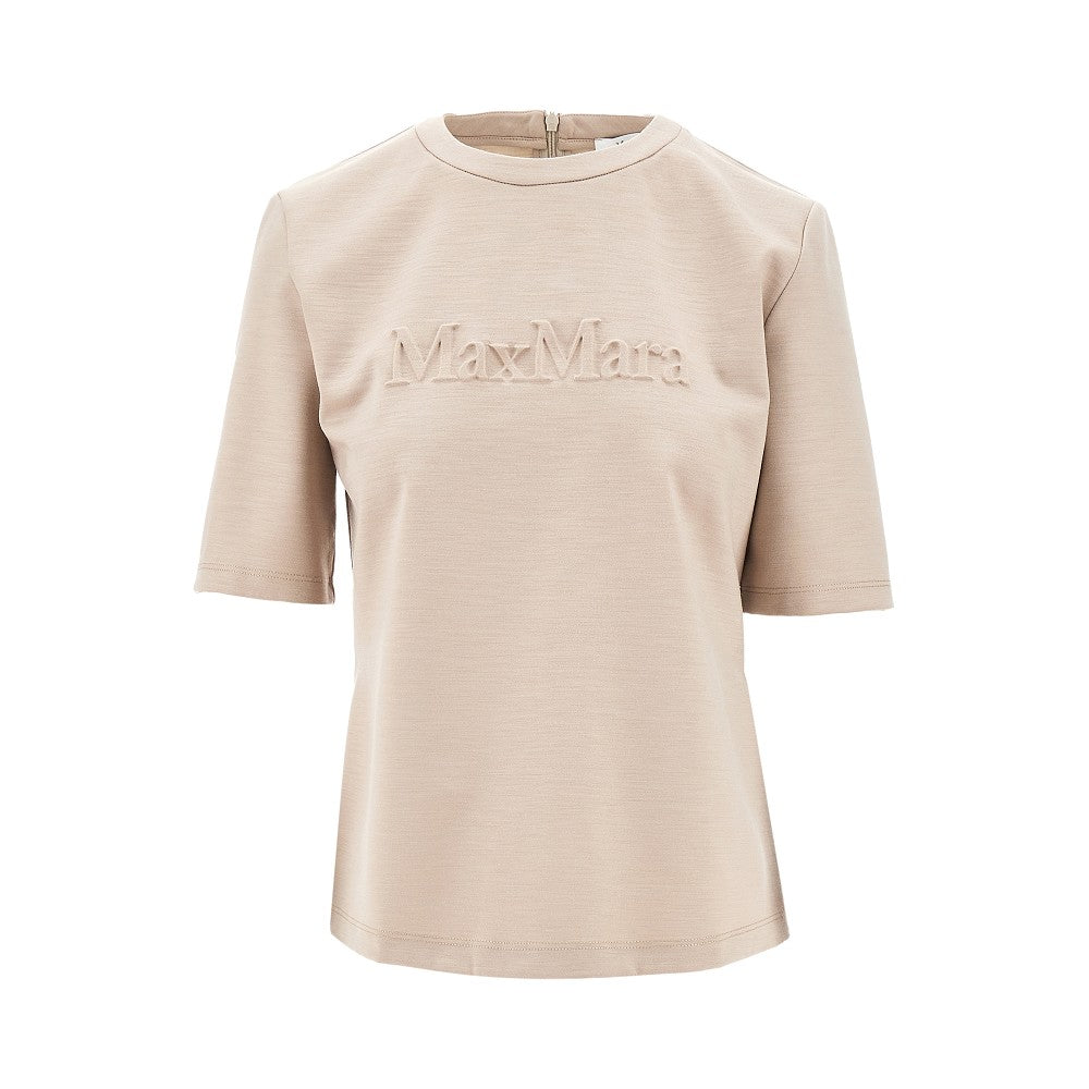 T-shirt girocollo a manica corta realizzata in compatto jersey di pura lana, arricchita dal logo lettering goffrato sul davanti. Vestibilità regolare.
