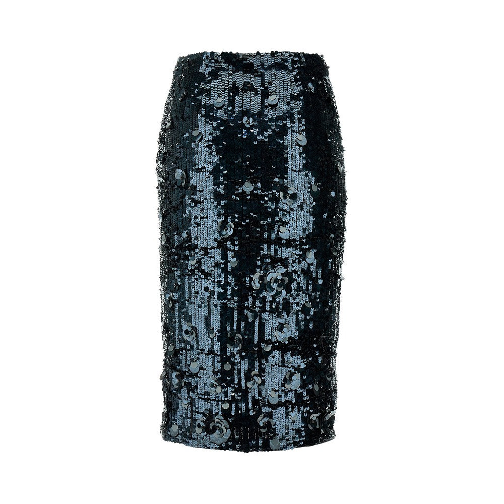 Gonna longuette realizzata in mesh stretch con paillettes ricamate all-over, arricchita dal dettagli floreali con cristalli. Silhouette aderente a vita alta. Vita elastica. Fodera in mesh stretch.