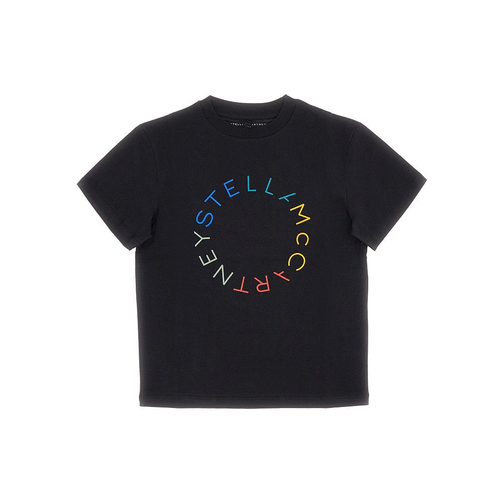 T-shirt a manica corta realizzata in jersey di cotone sostenibile, arricchita dalla stampa Stella Logo multicolore sul davanti. Girocollo rifinito in micro costine.