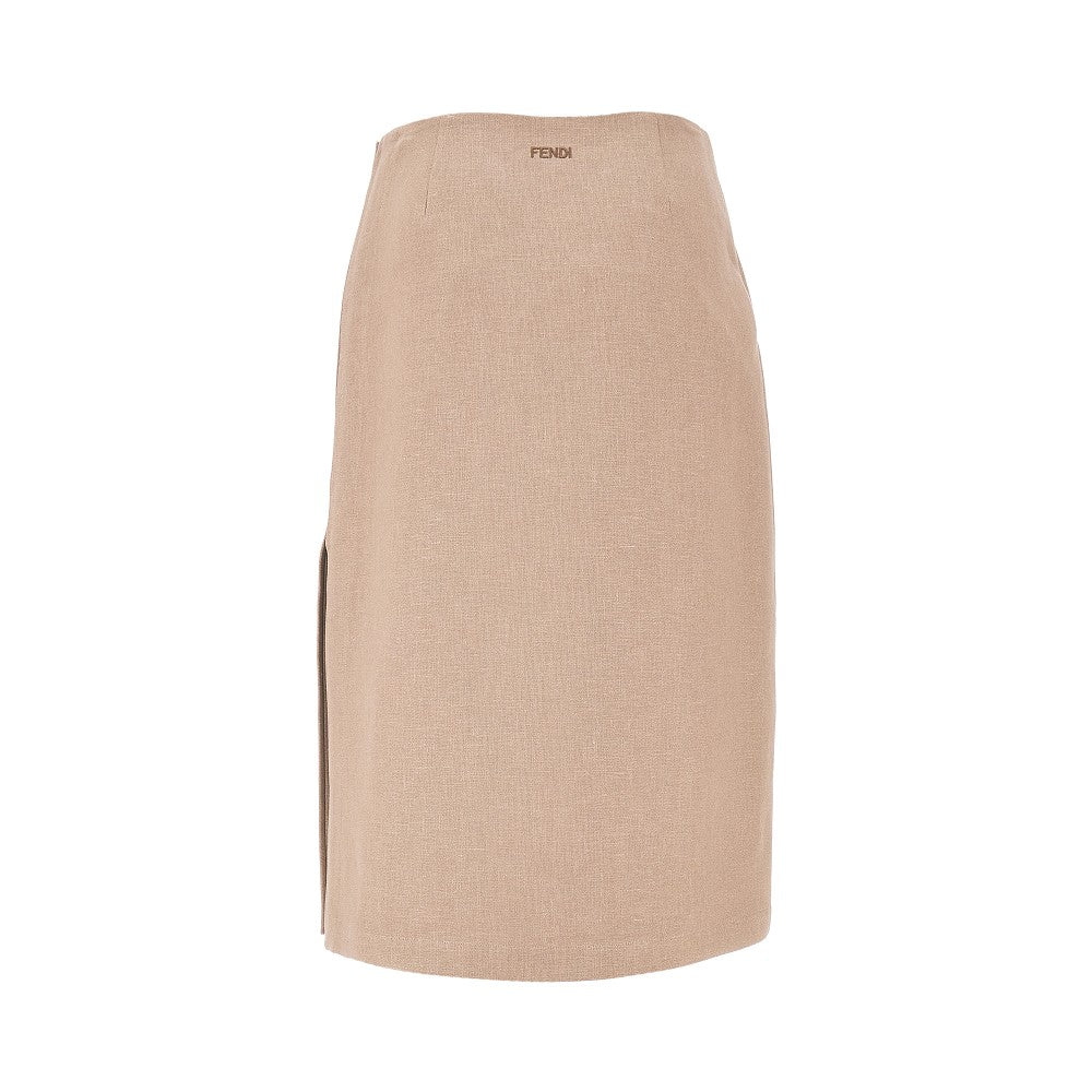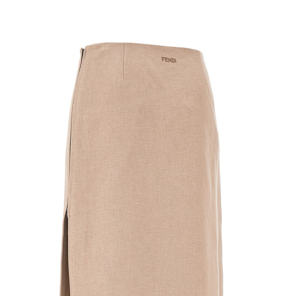 Gonna longuette in lino con spacco laterale
