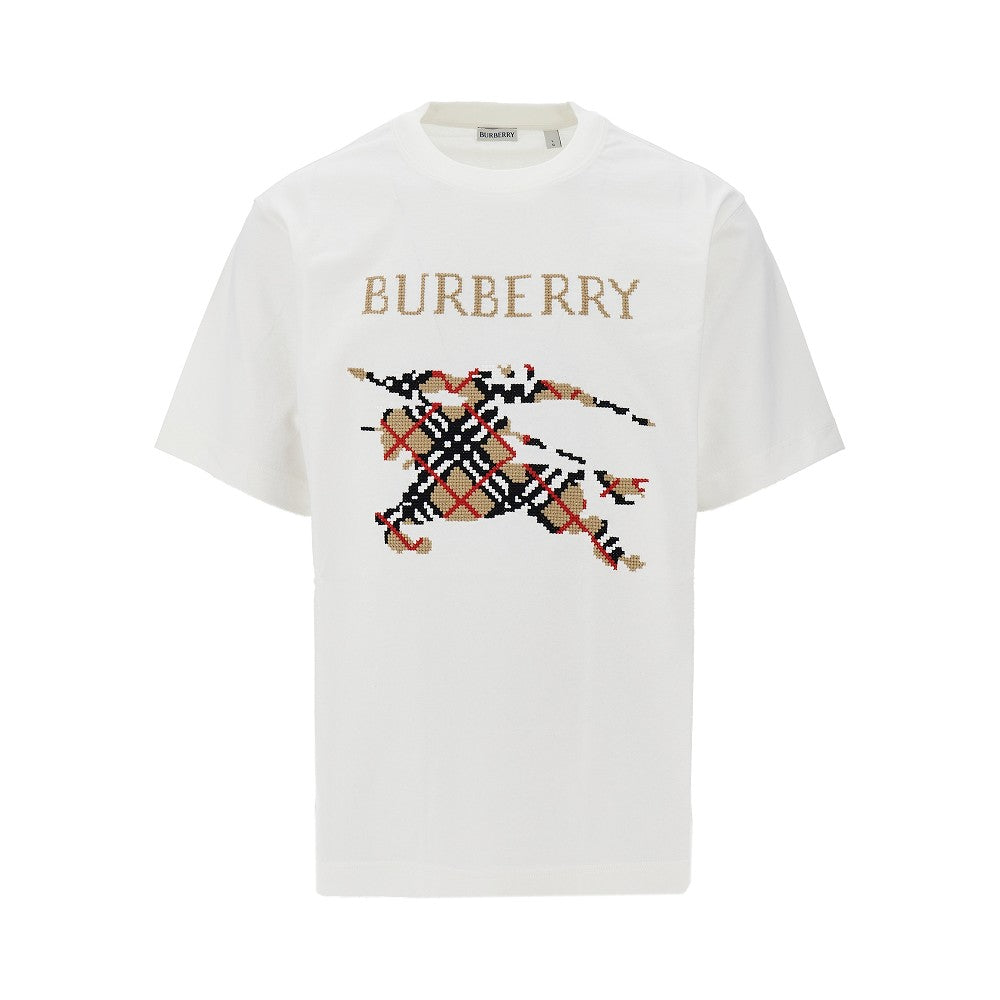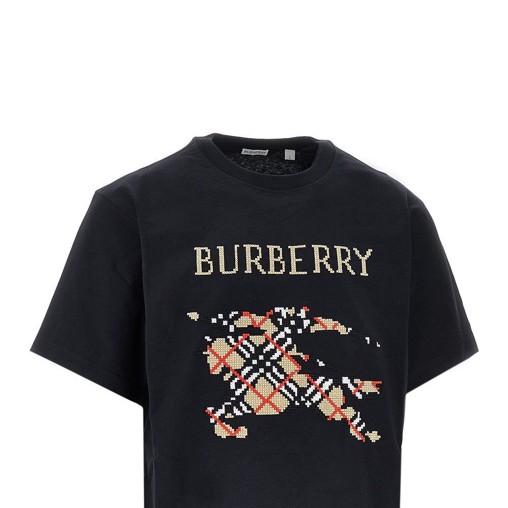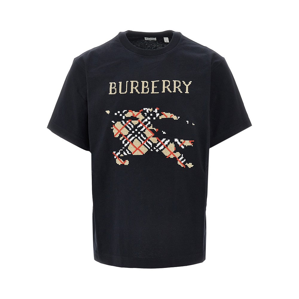 T-shirt in cotone con ricamo logo rovesciato