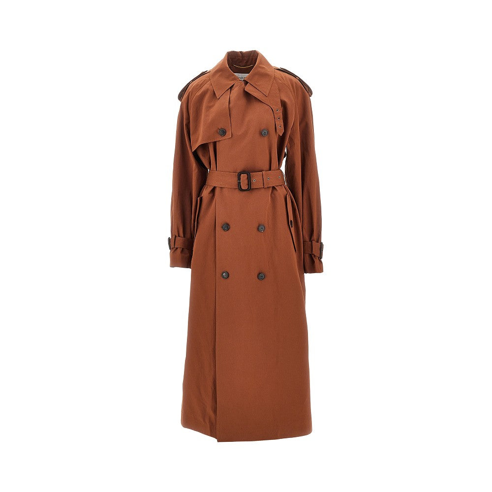 Trench lungo oversize in cotone e seta