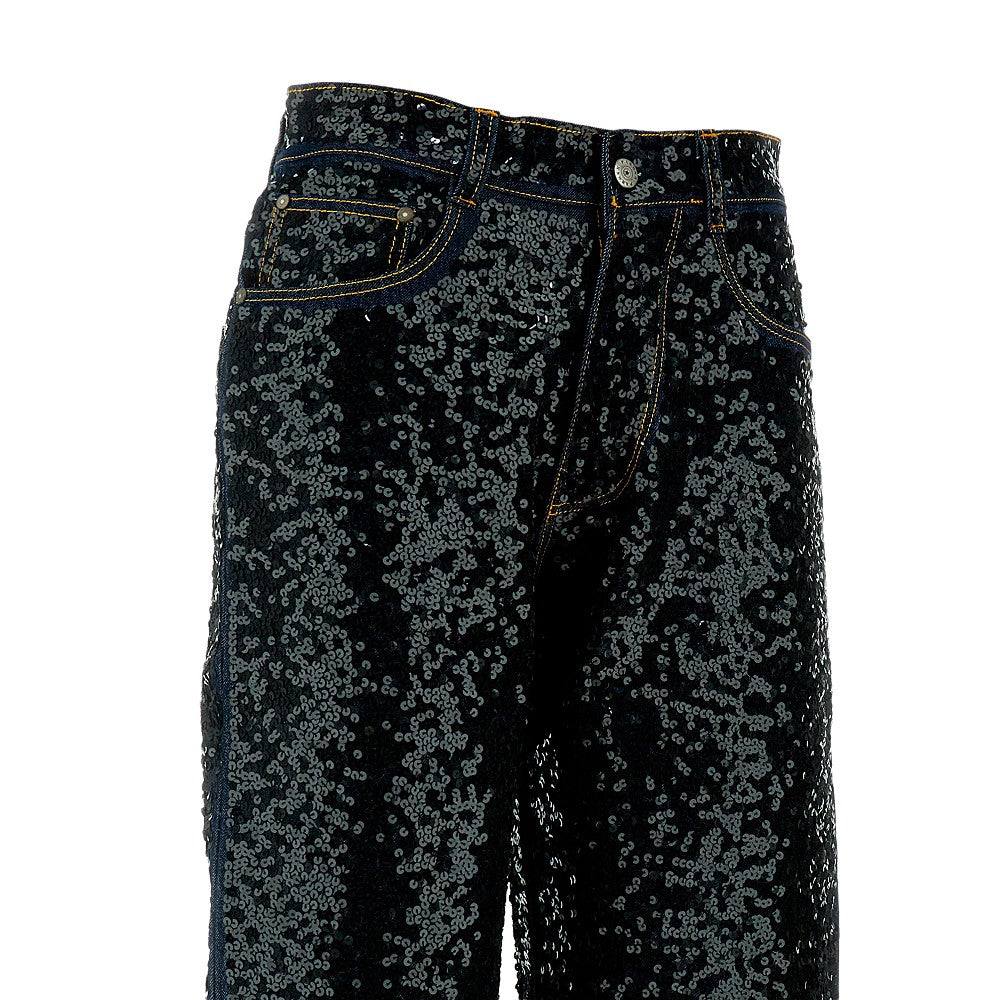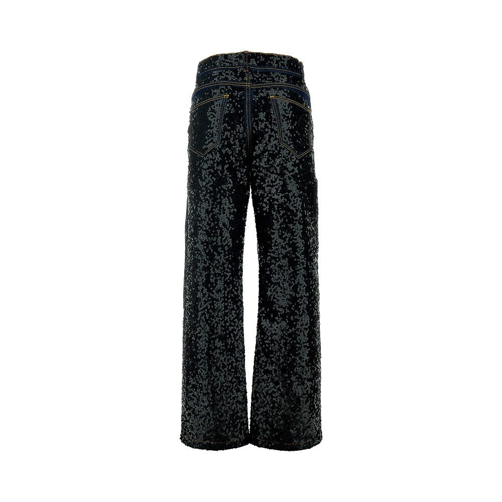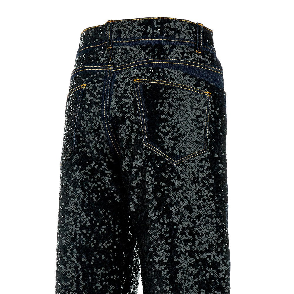 Jeans dritti con paillettes all-over