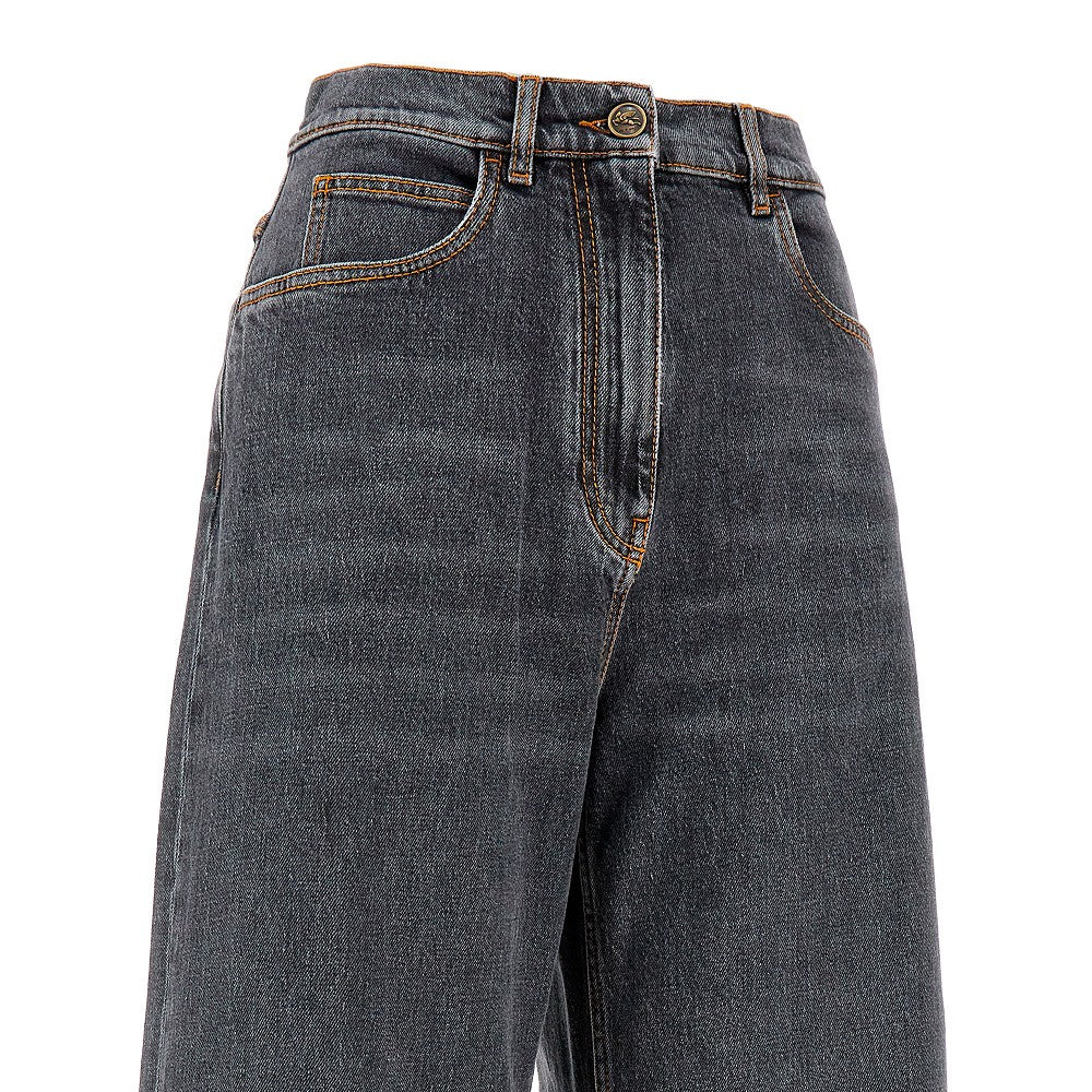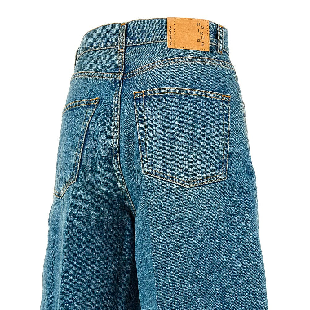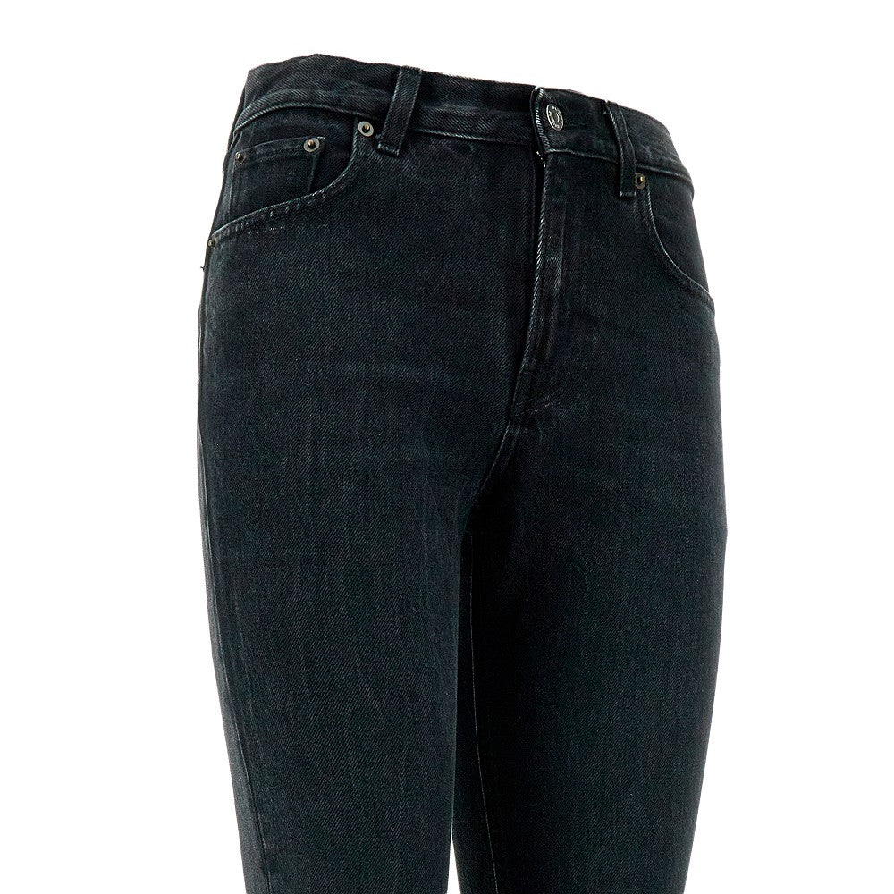 Pantalone in denim con gamba curva