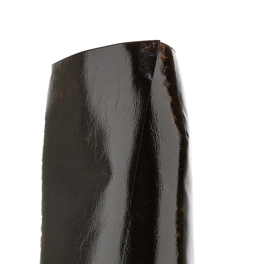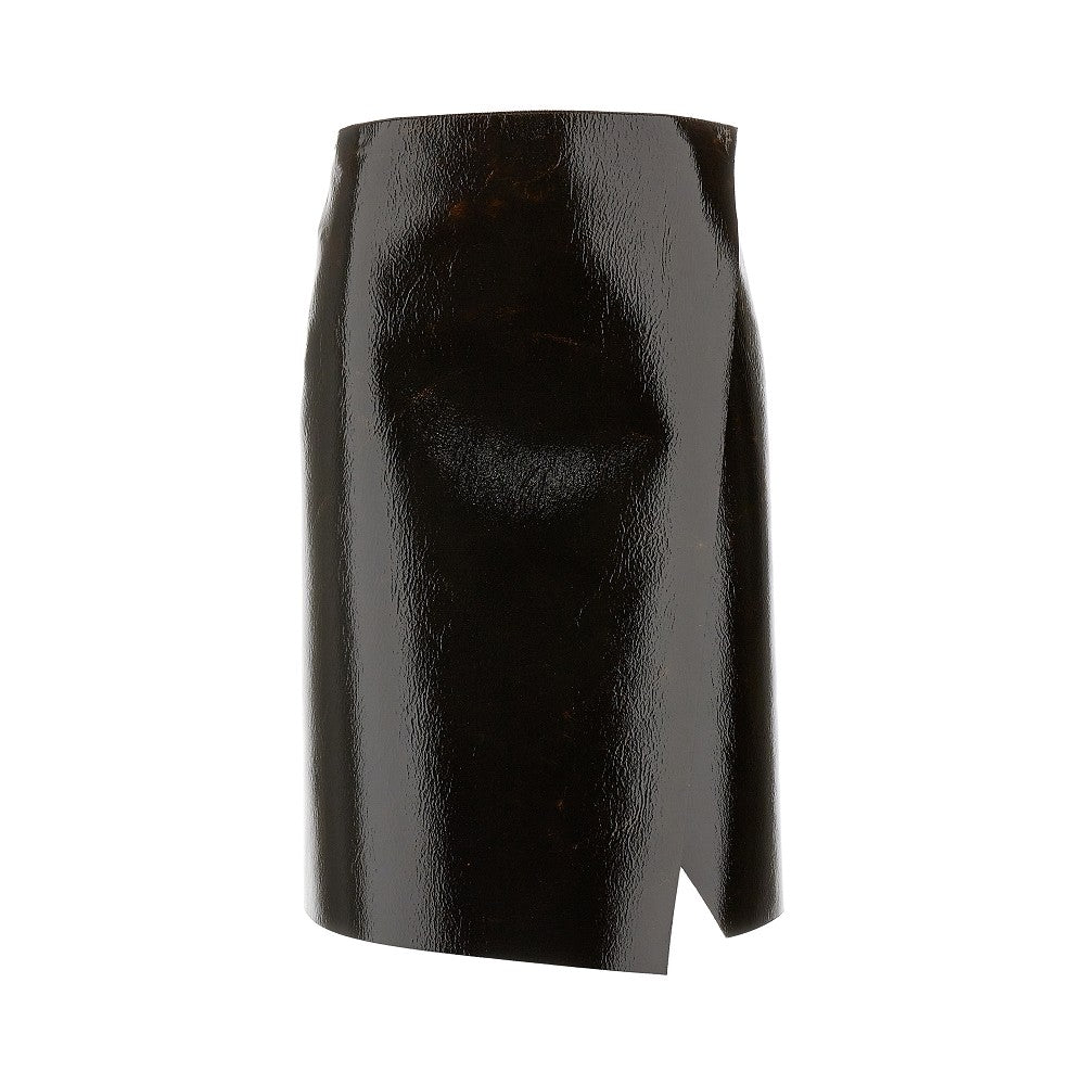 Gonna al ginocchio realizzata in tessuto di misto lana con spalmatura lucida effetto pelle, caratterizzata dal design a portafoglio. Chiusura con bottoni a scomparsa sulla vita. Silhouette dritta e regolare con vita bassa.