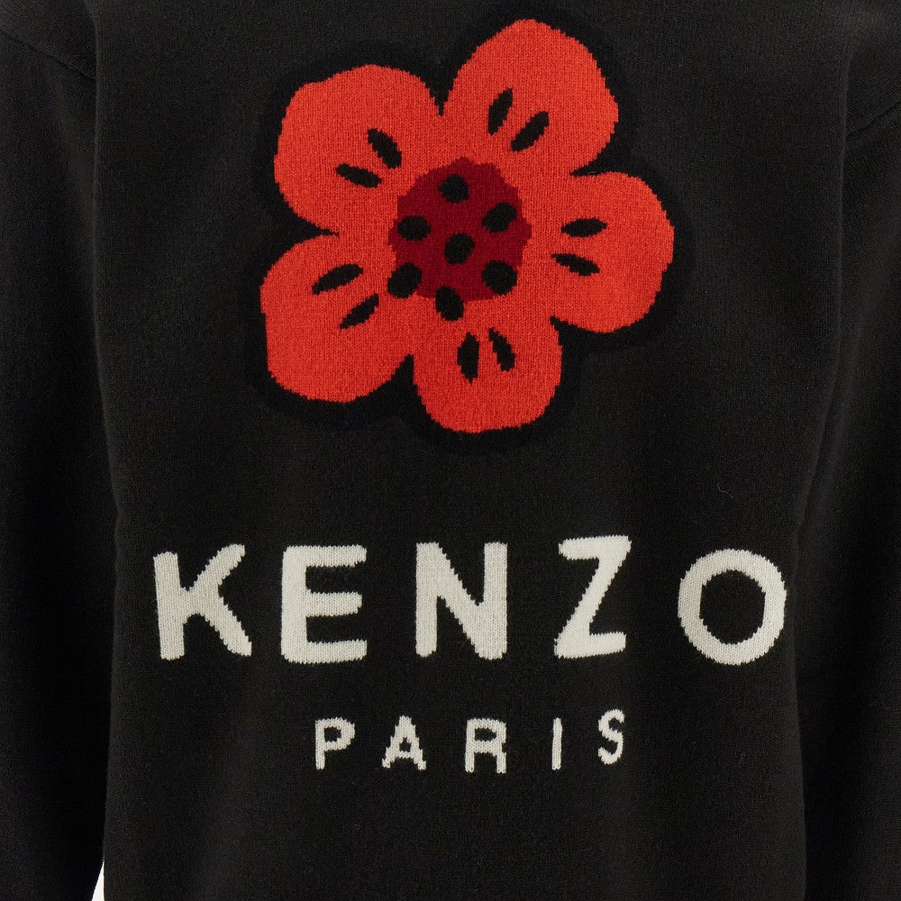 Pullover realizzato in filato di pura lana, arricchito dall'intarsio Boke Flower con logo "KENZO PARIS" sul davanti. Girocollo, polsini e fondo capo rifiniti a costine. Vestibilità comoda.