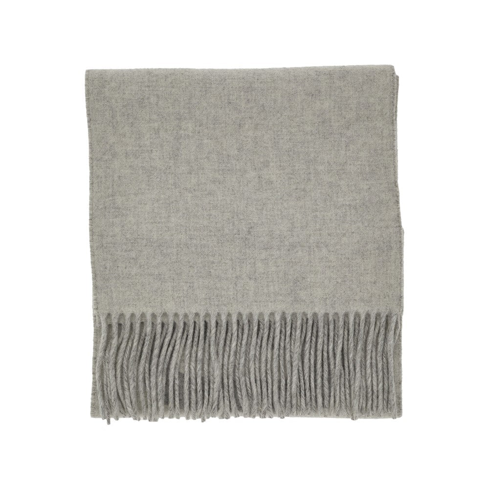 Sciarpa realizzata in soffice tessuto di pura lana vergine con logo jacquard a contrasto. Estremità arricchite da frange.