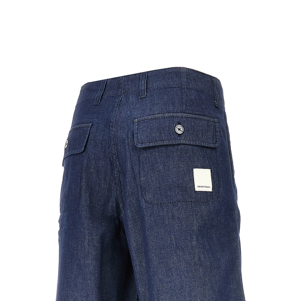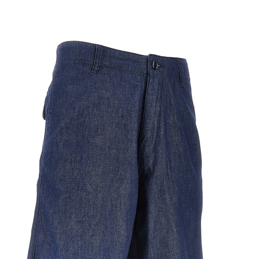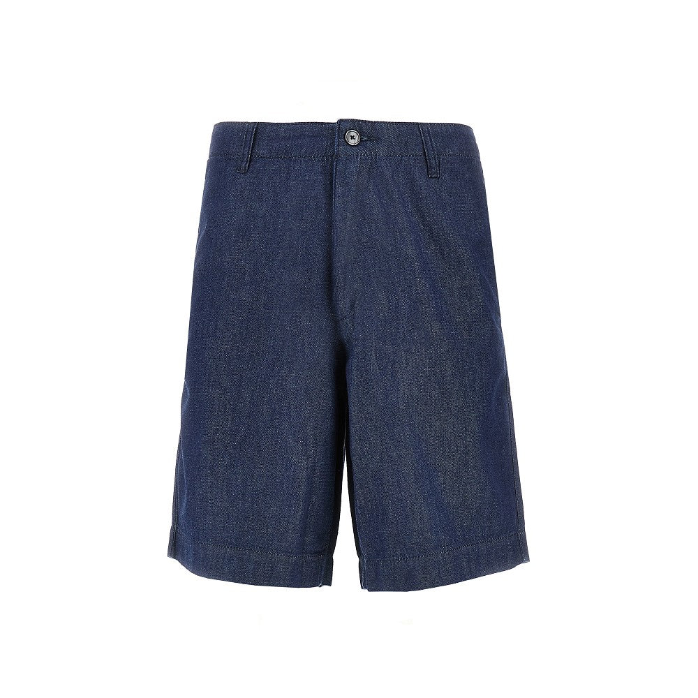 Bermuda realizzati in denim chambray di cotone biologico. Tasche laterali a filetto e con pattina button-down sul retro. Passanti per cintura, patta con zip e chiusura con bottone. Etichetta logo applicata sulla tasca posteriore destra. Vestibilità regolare con gamba ampia.