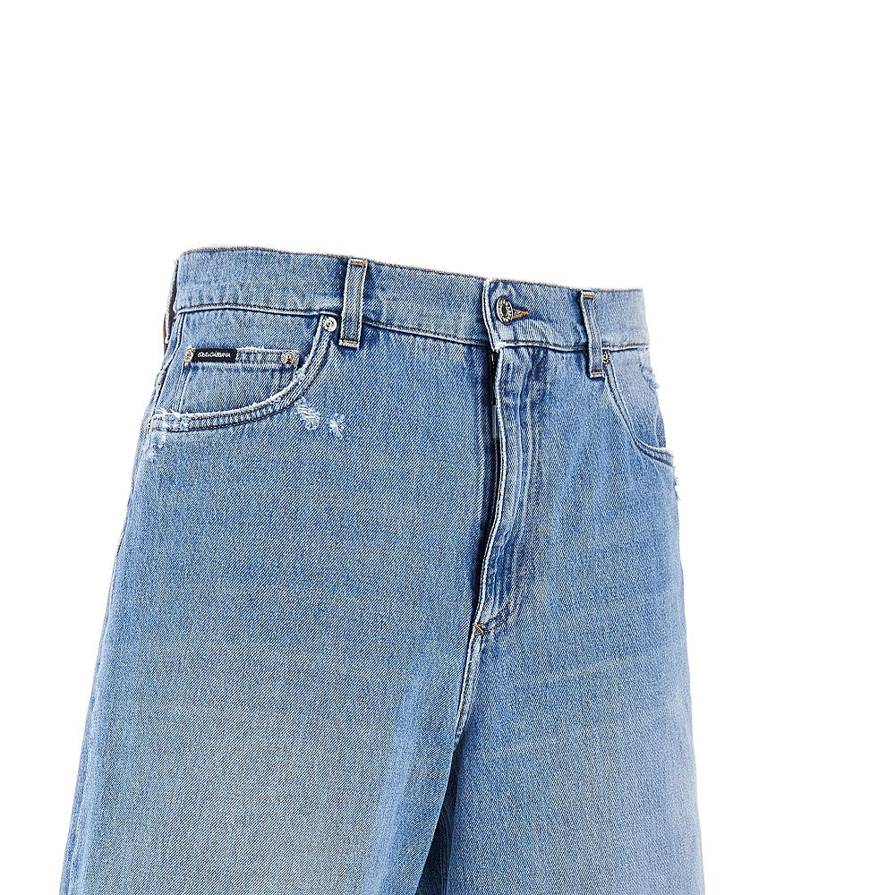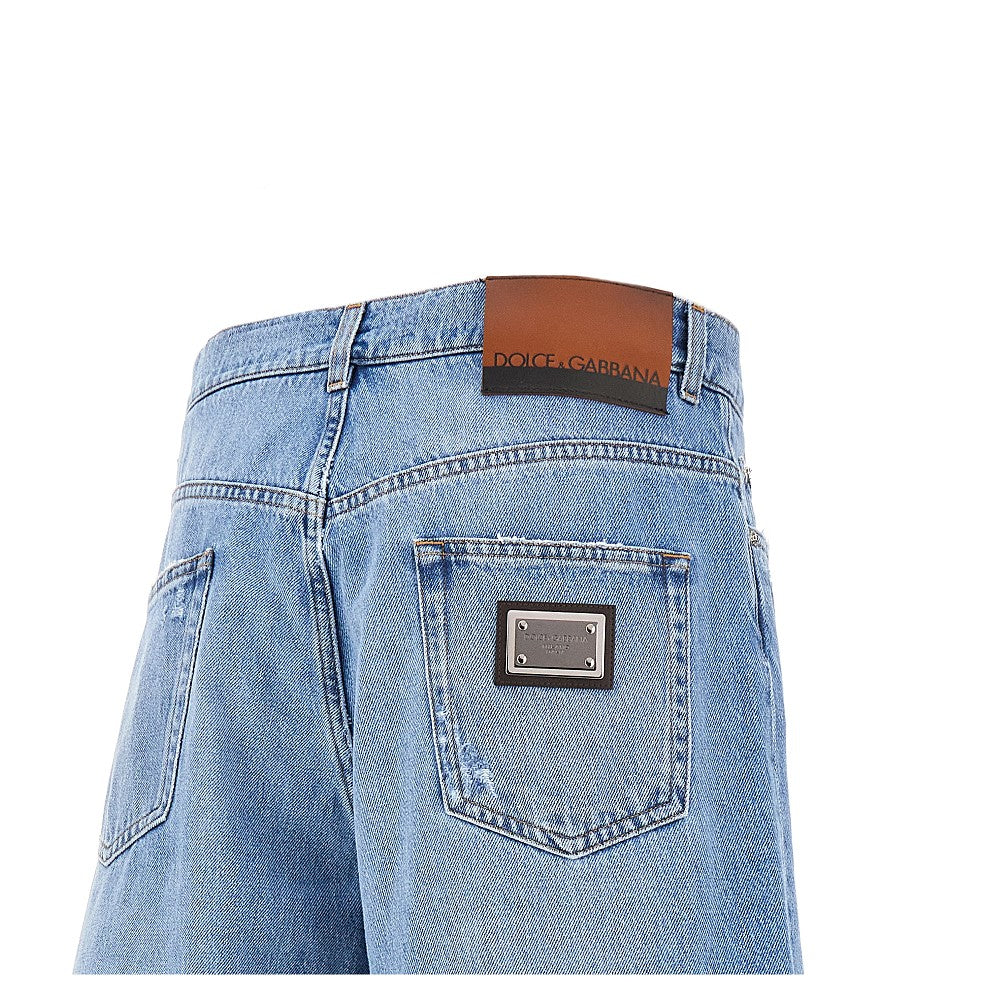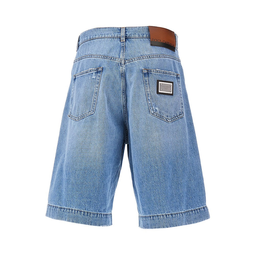 Bermuda cinque tasche realizzati in denim di cotone con leggero effetto consumato, arricchiti dal patch in pelle con placchetta in metallo con logo inciso sulla tasca posteriore destra. Vestibilità regolare con gamba dritta. Passanti per cintura, patta con zip e chiusura con bottone.