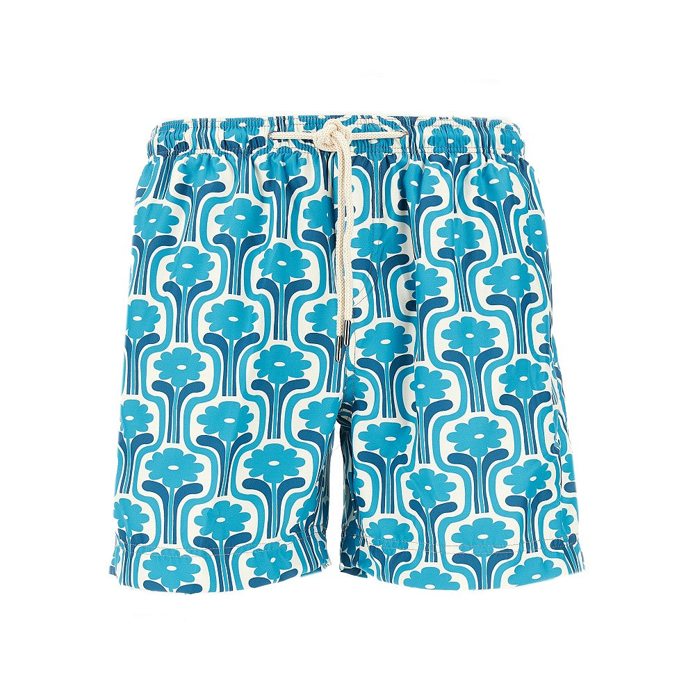 Bermuda mare in leggero tessuto tecnico di poliestere riciclato, caratterizzato dal pattern 'Flora' all-over. Vita elasticizzata con coulisse in corda. Tasche laterali a filetto e una a toppa sul retro. Etichetta logo in tessuto sul lato destro. Spacchetti laterali sul fondo. Slip in mesh.
